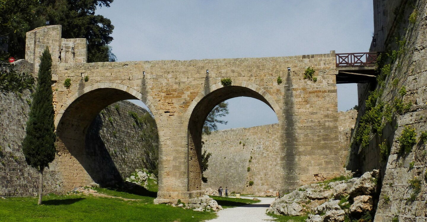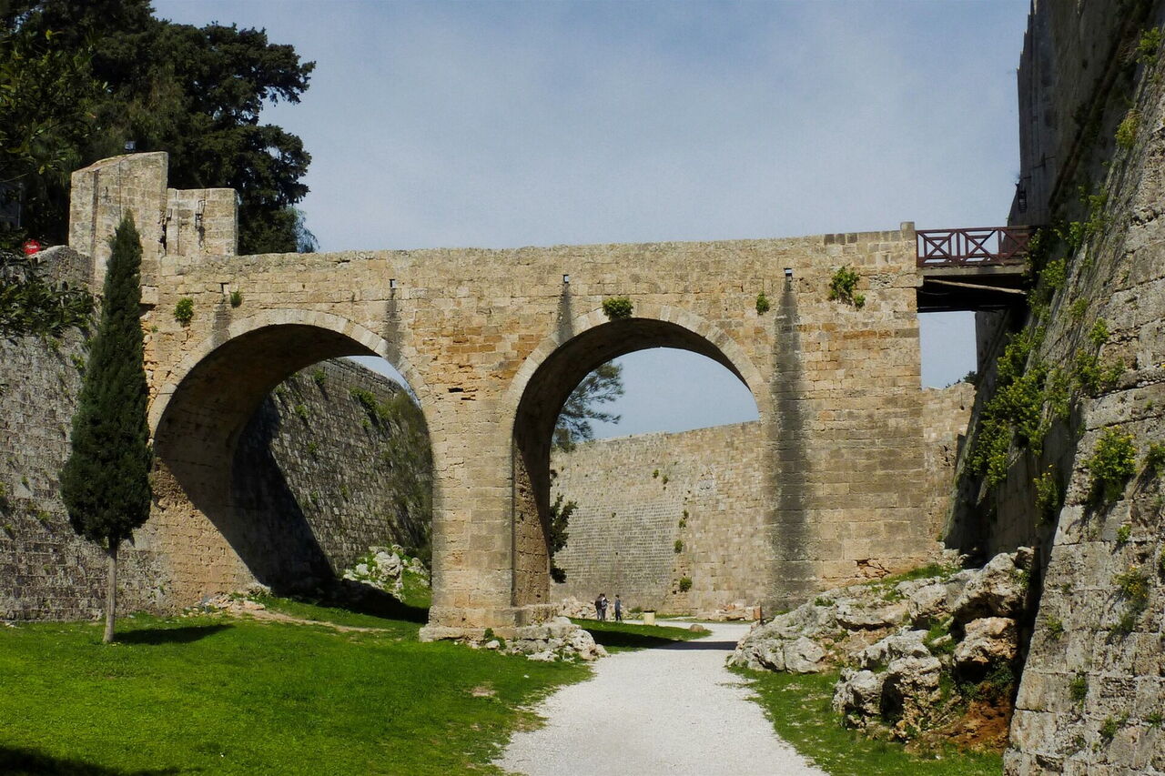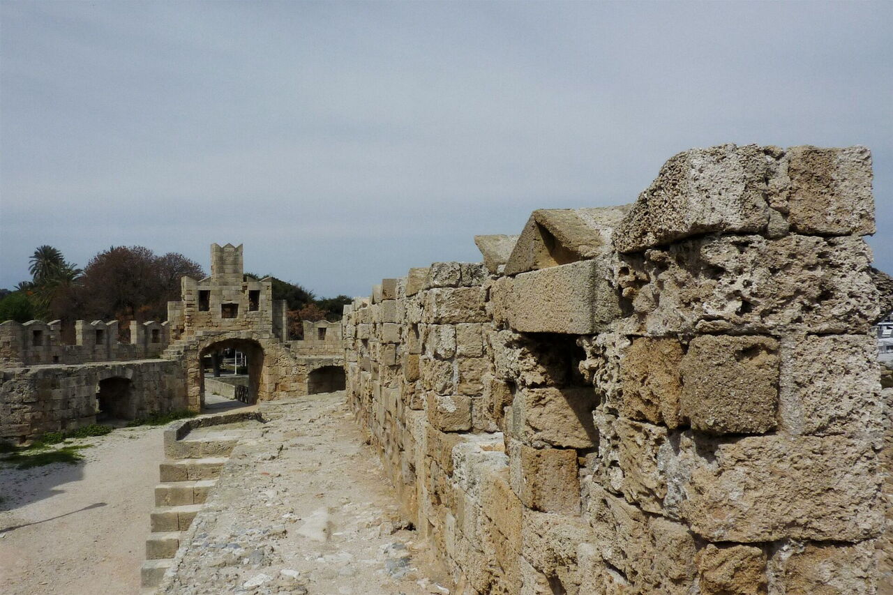 Nachdem die Ritter sich Rhodos angenommen hatten, vervollständigten sie im Jahr 1306 die bereits bestehenden byzantinischen Befestigungen. Ein sehr wichtiger Baustein ihrer Verteidigungsstrategie war der Burggraben, ein der Burg vorgelagertes Annäherungshindernis, um zu verhindern, dass die Angreifer unmittelbar an die Tore oder Mauern der Burg gelangen konnten. Seither ist die 4 km lange Stadtmauer mit bis zu 12 m dicken Mauern, rund 20 m hoch, unverändert geblieben. Was liegt da näher, als einen Orientierungsgang durch den bis zur 50 m breiten Burggraben der Ritterstadt Rhodos zu machen – ein sehr lohnendes Abenteuer. Es geht dabei durch Tunnel und über Brücken. Auf diesem Wege lassen sich am besten die 8 Verteidigungsabschnitte (französische Mauer, deutsche Mauer, Mauer der Ritter aus der Auvergne, Mauer der Krone Aragon mit der spanischen Bastion, englische Mauer, Mauer der Ritter der Provence und Mauer der Italiener sowie um die Hafenanlage die Mauern von Kastilien) des Bollwerks des Johanniterordens erkunden.