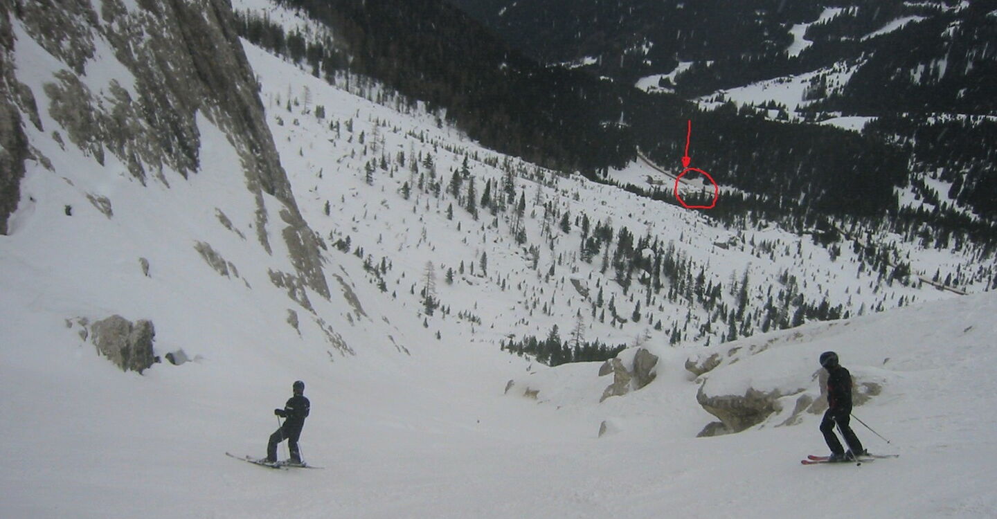 Wenn noch keiner die Strecke gefahren ist, ist die Orientierung ab den Latschenkiefern nicht so einfach. Die Abfahrt führt über einen Nordhang und Westhang. Folgende Ausrüstung wird empfohlen: Produkte für alpine Sicherheit im Schnee, Freerideski und Skitourenhelm. Es empfiehlt sich die Einkehr in das Rifugio Maria bei der Bergstation, welches nach Maria Piaz, der Pionierin des Tourismus am Pordoipass, benannt wurde. Beste Jahreszeit: Januar bis April. Uns erwarten kurze Stücke mit bis zu 35° Hangneigung.