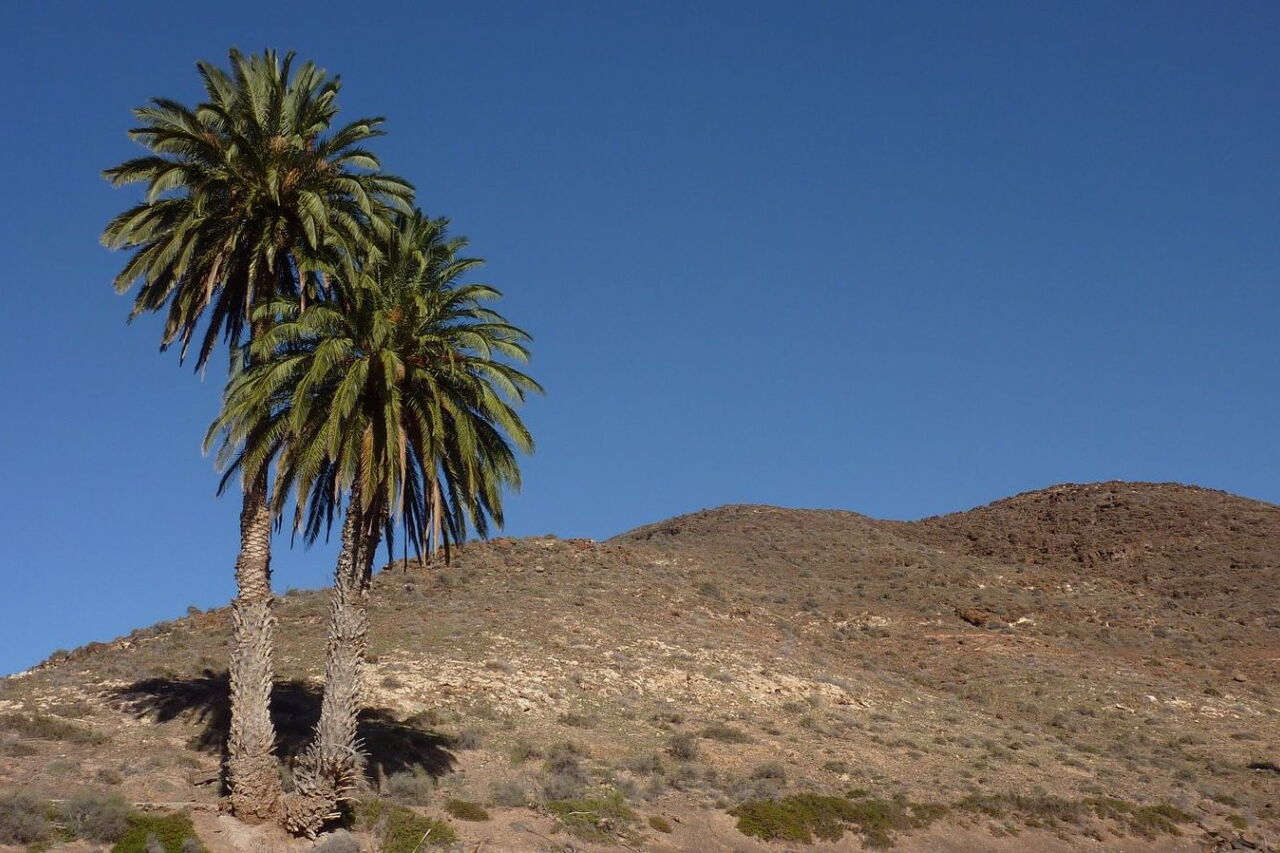 Definitiv eine der schönsten Wanderungen im mittleren Westen Fuerteventuras und dazu noch eine TOP-Einkehrmöglichkeit mit der Casa de la Naturaleza. Nach der Besteigung des zehnthöchsten Berges der Insel folgt eine spannende Wanderung durch das Barranco de la Madre del Agua. Vereinzelt plätschern Quellen, kleinere Gumpen werden umlaufen, weitere kleine Flüsse nähren den Hauptstrom – dabei fräst sich der Fluss immer tiefer in seine Umgebung. Es ist eines der wenigen Barrancos auf der Insel, die ganzjährig Wasser führen. An seiner Mündung erlebt man wie in einer Oase zwitschernde Vögel zwischen Palmen, Schilf und Tümpeln. Und dann führt der Weg noch vorbei an einer Wallfahrtskirche, umgeben von mächtigen Basaltfelsen.