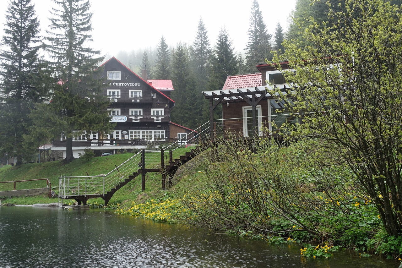 Nach einem beständigen Bergauf und Bergab – wie es in den Bergen nun einmal üblich ist – erfolgt dann der kontinuierliche Abstieg zum Straßenpass Čertovicou. An dieser Stelle gibt es einen Schnittpunkt mit der Wanderung 12. Hier befinden sich direkt an der Straße eine Übernachtungsmöglichkeit und ein Restaurant. Einkaufsmöglichkeiten gibt es hier allerdings keine! Etwas gemütlicher, ursprünglicher und ohne Straßenlärm geht es zu, wenn man hinter der Passstraße links bergab bis zur 03 Chata pod Čertovicou (1091 m) absteigt. Die komfortable Unterkunft ist mehr Hotel als Hütte. | Vyšná Boca 259, 032 34 Vyšná Boca | http://www.Chatapodcertovicou.eu | info@Chatapodcertovicou.com | GPS: 48.906157 19.744303 |