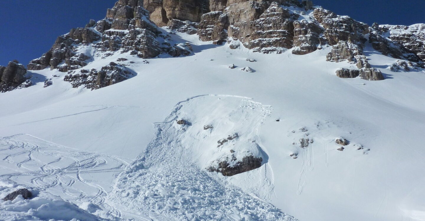 Bei der Bergstation des Sessellifts Nr. 5 Alpe Potor Nuvolau fahren wir direkt unter dem Lift zurück im Hang querend. Hier ist Vorsicht geboten, da sich immer wieder Schneebretter lösen können.