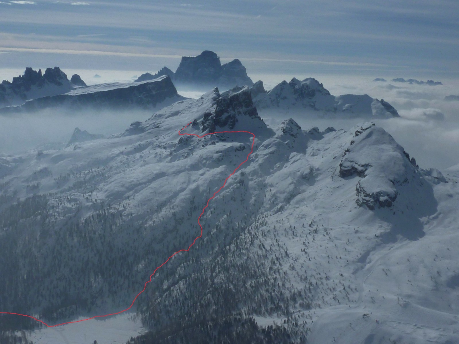 Der 1956 durch die Olympischen Winterspiele bekannt gewordene Ort Cortina d'Ampezzo liegt in traumhafter Landschaft, umgeben von den Gipfeln der Tofana di Mezzo 3243 m, Monte Cristallo 3218 m und Punta Sorapis 3205 m. Bisher gehört die Dolomitengemeinde zur venetischen Provinz Belluno und nicht zu Südtirol, trotzdem wird auch hier Ladinsch gesprochen. Ohne Frage in Cortina d'Ampezzo trifft man Gäste aus der ganzen Welt und besonders auf der Flaniermeile im Dorfkern. Die drei Skigebiete Faloria Cristallo Mietres, Tofan Ra Valles und Lagazuoi 4 Torri, mit 38 Bergbahnen und 120 Pistenkilometer, sind absolute Spitzenklasse. Wir sind aber gekommen um die Variantenabfahrten in dieser Region zu erkunden.
