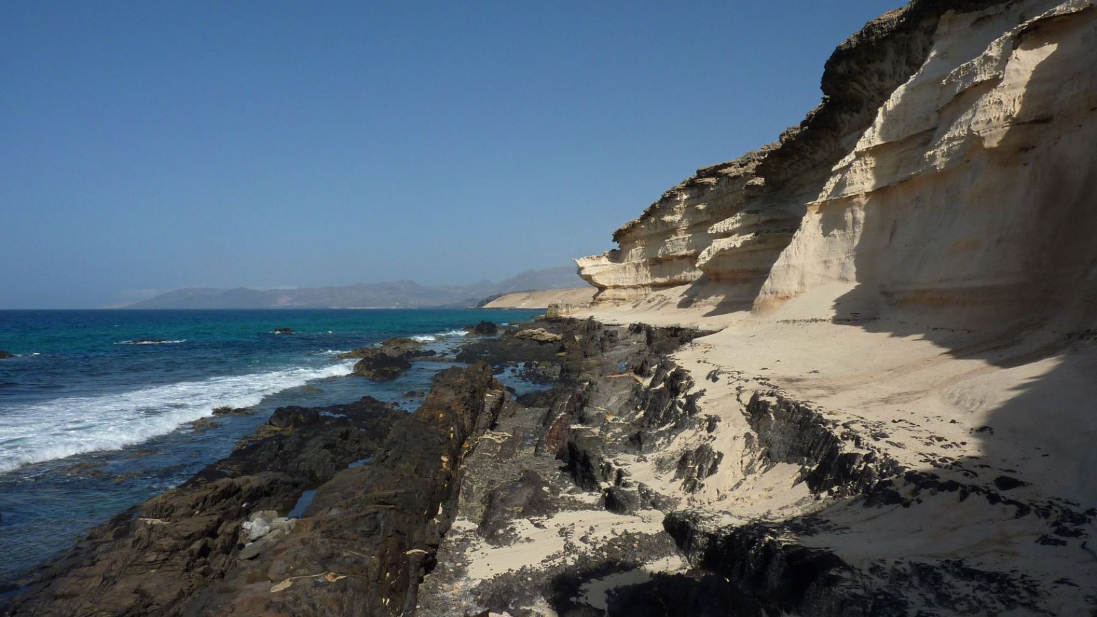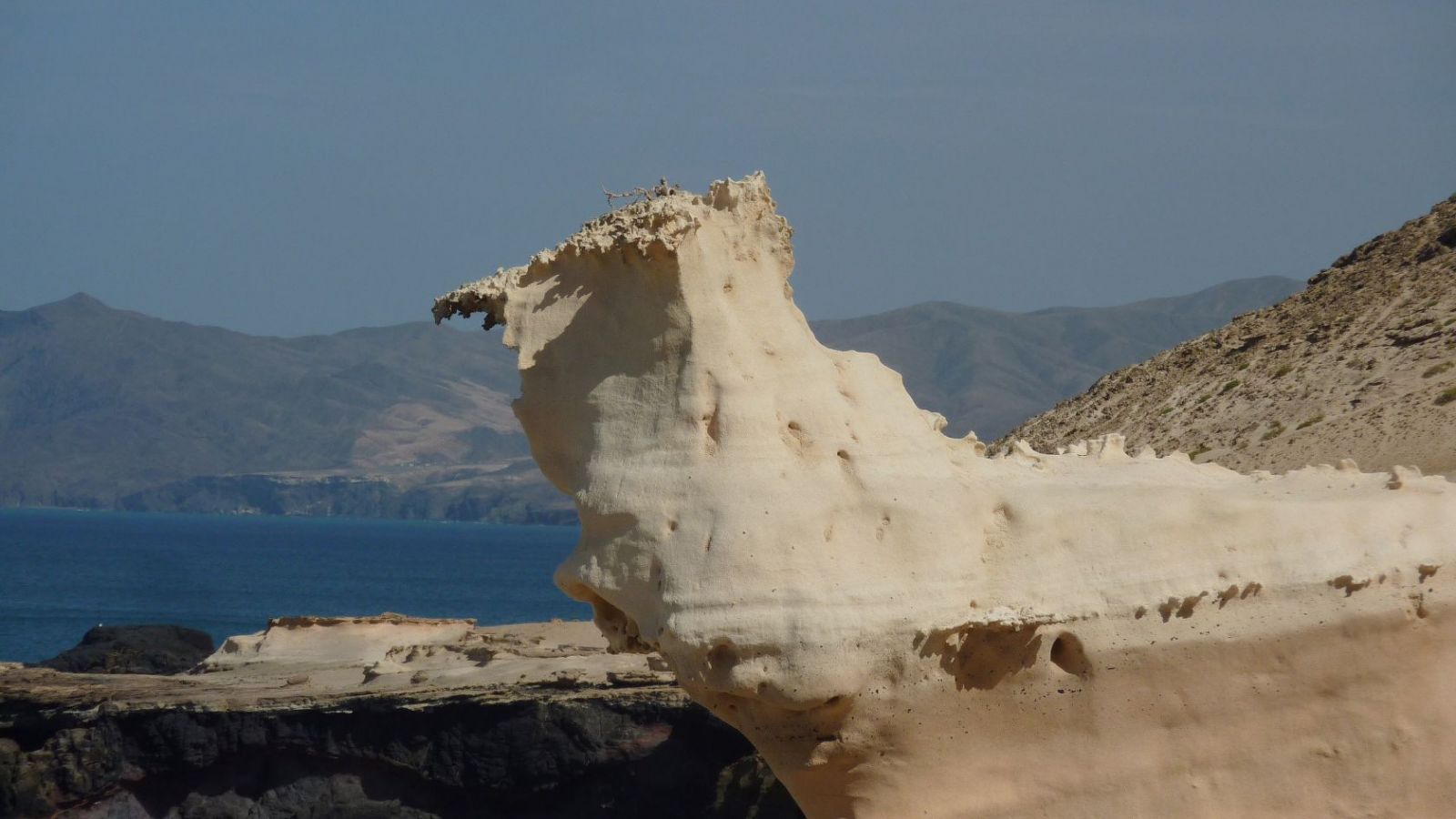 Eine extrem beeindruckende Wanderung durch das Naturschutzgebiet Jandia, die stark an die Durchquerung einer Wüste erinnert. Dabei läuft man auf dem Hinweg immer entlang der schmalsten Stelle von Fuerteventura, die hier nur einen Durchmesser von 4,5 km hat. Steigt man zwischen den Klippen zur Westküste herunter, so lässt sich miterleben, wie die gewaltigen, meterhohen Wellen mit tosendem Lärm an die Küste prallen – ein Erlebnis, das wir niemals vergessen werden. Auch die vom starken Passatwind geformten Sandsteinobjekte bieten unzählige Fotomotive. Ein besonders kraftvoller Ort – die Westküste von Fuerteventura.