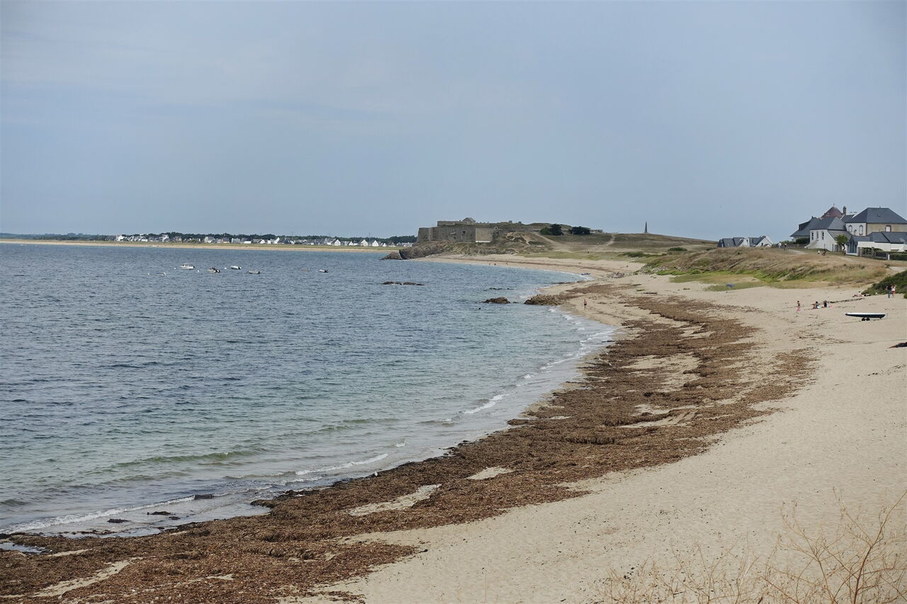 Nachdem wir einem weiteren Parkplatz hinter uns gelassen haben, führt der Pfad zwischen dem Atlantik und Villen entlang, in der Ferne sieht man die Festungsmauern des 05 Fort de Penthiévre (12 m). Sobald der Weg über eine Treppe führt, gehen wir die wenigen Meter rechts bis zur Avenue de Groix vor und dann bei der Straßengabelung rechts in die Rue de Sombreuil, diese führt direkt zur Bahnstation Kerhostin.