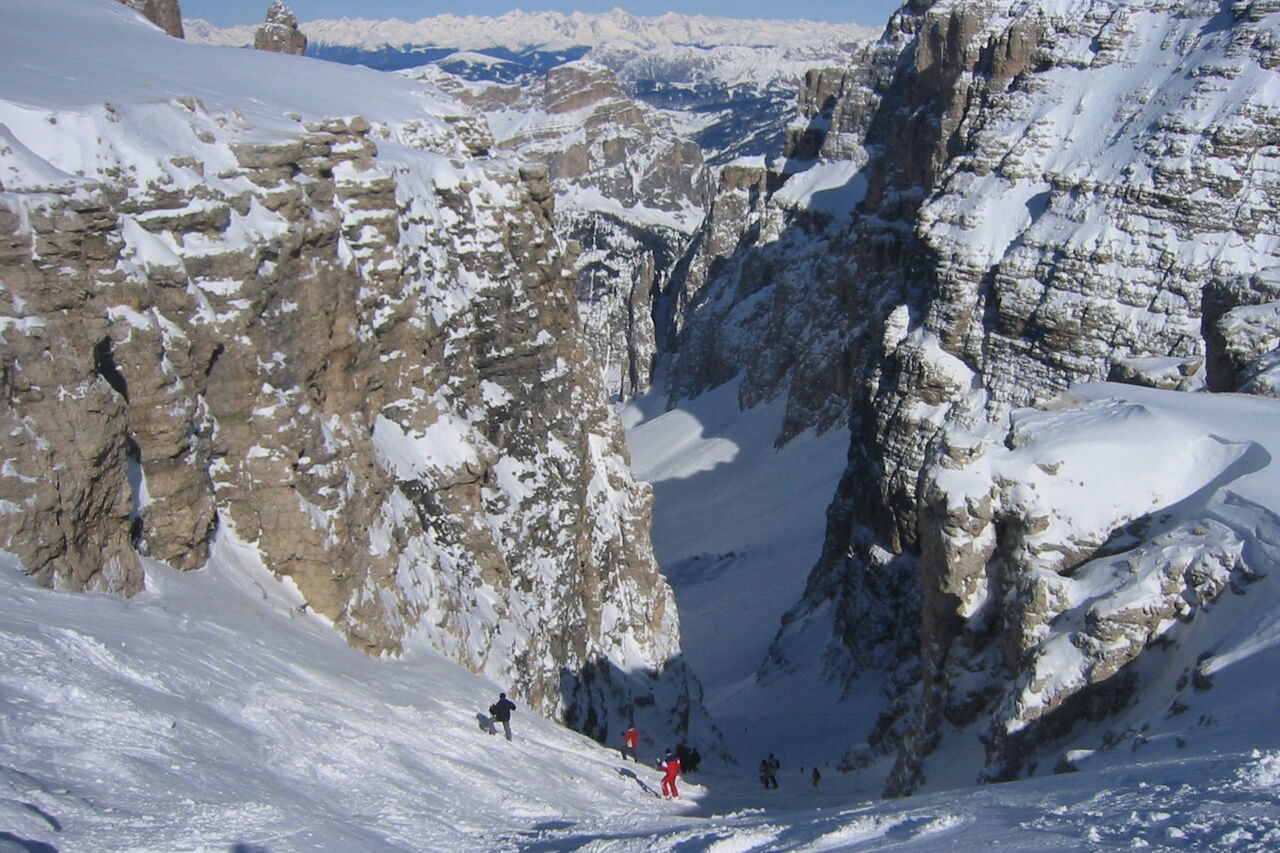 Wenn noch keine Spur vorhanden ist, ist die Orientierung nicht einfach, aber mithilfe des GPS-Tracks gut machbar. Die Abfahrt führt über einen Nordosthang. Folgende Ausrüstung wird empfohlen: Produkte für alpine Sicherheit im Schnee, Tourenski und Skitourenhelm. Es empfiehlt sich die Einkehr in das Rifugio Maria bei der Bergstation, welches nach Maria Piaz, der Pionierin des Tourismus am Pordoipass, benannt wurde. Beste Jahreszeit: Januar bis April. Uns erwarten kurze Stücke mit bis zu 35° Hangneigung.