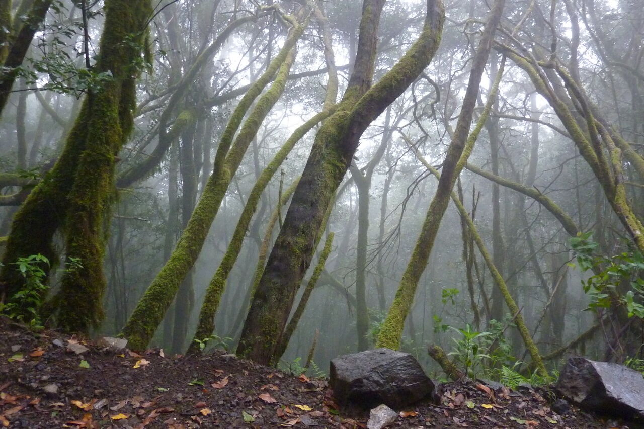 Im Hochtal von El Cedro fangen sich die ankommenden Passatwolken und geben ihre mitgebrachte Feuchtigkeit an den immergrünen Lorbeerwald ab. Der erste Teil der Wanderung führt durch ein Chaos von Stämmen, Blättern und Hängemoosen mit ihren langen Bärten, die sich Richtung Sonne strecken, um möglichst viel Licht einzufangen. Bei der Durchquerung eines alten, 575 m langen Wasserstollens kommt Spannung auf. Konstruktiv bedingt hängt der Tunnel in der Mitte ein wenig, was dazu führt, dass an dieser Stelle in der Regel 20-30 cm Wasser stehen - so kommt man nur nach langen Trockenperioden trockenen Fußes durch den Wasserstollen. Eine besondere Tour, die all unsere Sinne anspricht.