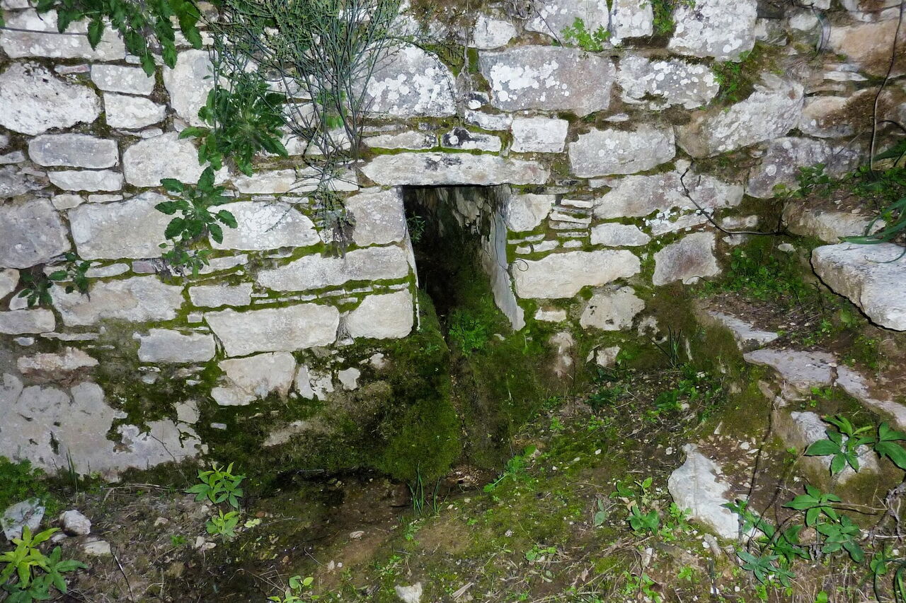 Wir treffen auf eine Schotterpiste und folgen dieser rechts, um bei der nächsten Möglichkeit – wir sehen Weinreben vor uns – abermals rechts der Schotterpiste zu folgen. Nun befinden wir uns auf der alten Verbindungsstraße von Embona nach Siana. An einer Stelle, wo diese Straße verschüttet ist, steigen wir halb links auf den beginnenden Pfad, der aber schon bald bei einem Flussbett endet – hier wurde der Pfad nach starken Niederschlägen abgetragen. Wir gehen 20 m talwärts durch das Flussbett, um dann halb links dieses wieder zu verlassen. Wir treffen auf eine Schotterpiste, auf der wir rechts entlangwandern. Schon bald treffen wir auf die Ruinen einer (04) alten Kapelle (435 m) von 1850. Sobald der Pfad endet, gehen wir halb links und weglos in Kehren bis zur Hauptstraße vor.