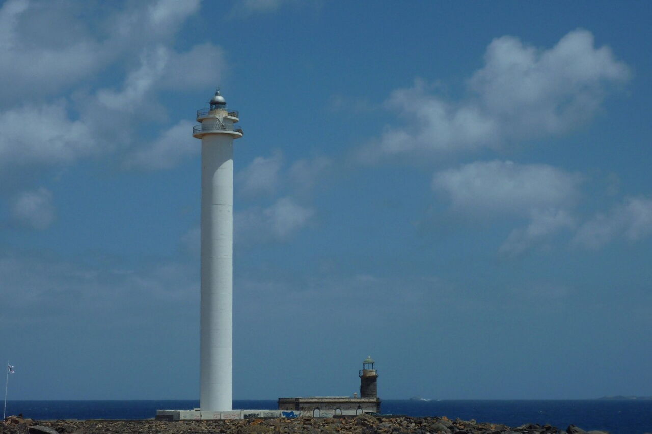 Bereits hinter dem ersten Häuserblock endet der Promenadenweg und es geht auf einem Schotterpfad, vorbei an einem zweiten Häuserblock, bis zum Leuchtturm (02) Faro Pechiguera (10 m). Er liegt an der Meeresenge La Bocayna, die Lanzarote von ihrer Nachbarinsel Fuerteventura trennt, an der äußersten Südwestspitze von Lanzarote. Der alte und der neue Leuchtturm stehen direkt nebeneinander. Der 1866 eingeweihte Leuchtturm hatte ein permanentes, 12 Meilen weit sichtbares Leuchtfeuer und war rund 120 Jahre lang in Betrieb. Er wurde aus Basaltstein erbaut und erreicht eine Höhe von 10 m. Heutzutage ist die Einrichtung natürlich außer Betrieb, denn sie wurde durch den 1986 erbauten, 50 m hohen Leuchtturm ersetzt. Für die Wanderung entlang des Leuchtturms gibt es verschiedene Varianten, aber wenn man sich immer so dicht wie möglich am Meer hält, erreicht man schon bald wieder einen Weg entlang der Promenade.