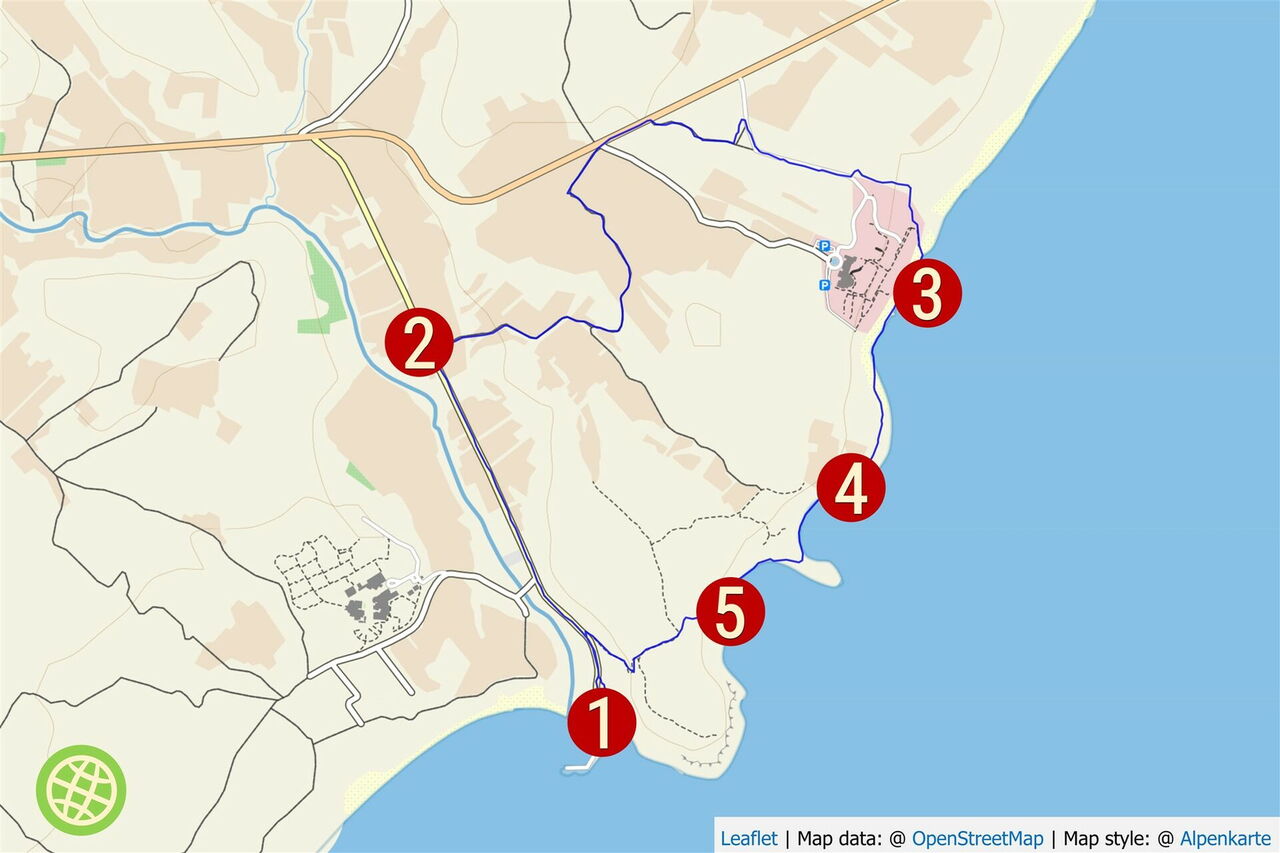Am kleinen Fischereihafen Plimmyri befindet sich die ursprüngliche und sehr empfehlenswerte Fischtaverne Plimmyri. Direkt dahinter befinden die Überreste einer dreischiffigen Basilika aus dem 5. bis 6. Jahrhundert, Zeugen der dichten Besiedlung des Inselsüdens. Vorbei führt die Wanderung an dem 400 Betten umfassenden Hotelkomplex Tui Magic Life Plimmyri und weiter zu dem Fünfsternehotel Atrium Prestige. Den Höhepunkt der Wanderung bilden zwei Traumstrände. Sie liegen windgeschützt unterhalb kleiner Klippen, haben einen sehr feinen Kieselstrand und laden zum Verweilen ein. Baden kann man dort im seichten Wasser sehr gut.