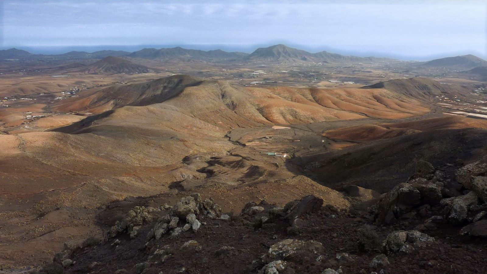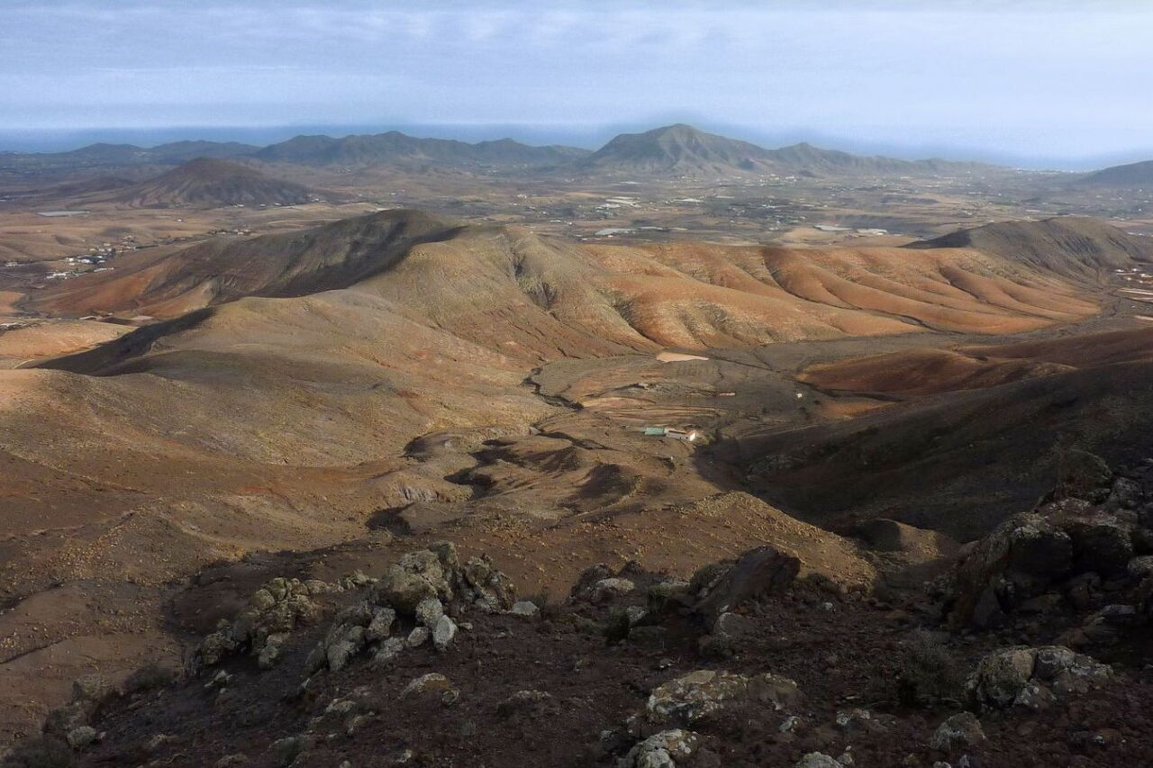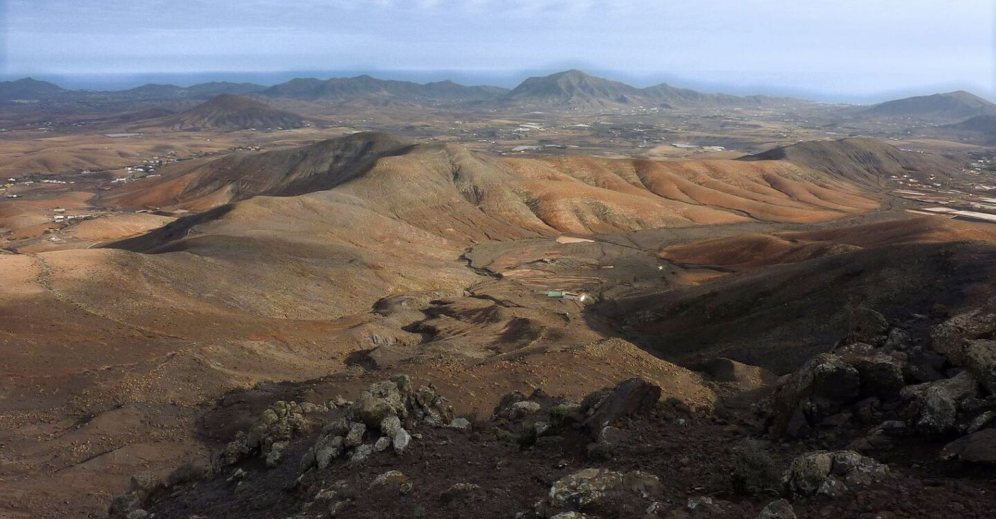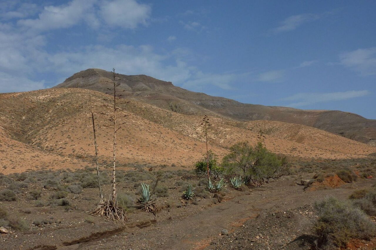 Der Startpunkt unserer Wanderung befindet sich in dem kleinen und verschlafenen Dorf Cardon in der Gemeinde Pájara. Der Ackerbau ist in dieser Region immer noch stark verbreitet. So führt der Weg vorbei an traditionellen Entwässerungsgräben, wo mithilfe von Erdwellen das Regenwasser gestaut wird. Kurz vor dem Gipfel kommt an einer kleinen Kletterstelle Nervenkitzel auf. Vom Gipfel aus ergibt sich ein beeindruckender Blick auf das Naturdenkmal Montana Cardon, den direkten Nachbarn der Gran Montana Hendida. Das Erscheinungsbild des felsigen Gebirgsmassivs ist geprägt durch seine gezackten Oberflächen, die durch Erosion entstanden sind. Nach dem Abstieg vom Gipfel führt ein bequemer Höhenweg zurück zum Ausgangspunkt.
