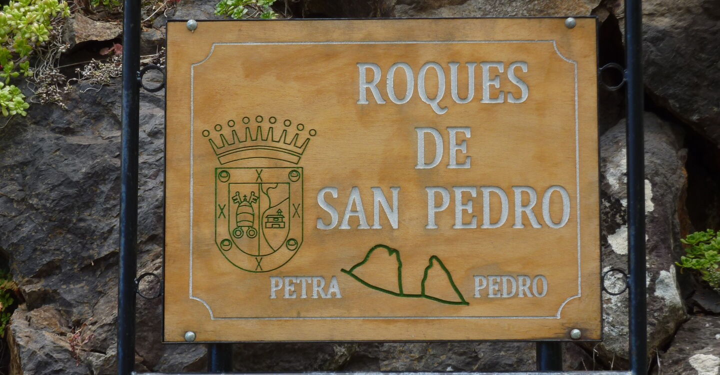 Fährt man auf der Hauptstraße talauswärts, so rücken im Ortsteil El Curato die Wahrzeichen von Hermigua ins Blickfeld: die eindrucksvollen Zwillingsfelsen Roques de San Pedro - Pedro (456 m) und Petra (411 m). Petra schaut lässig hinab auf El Convento und die weiteren Ortsteile von Hermigua, Richtung Atlantischen Ozean. Petro beherrscht mit seinen 150 m Höhe die Ortschaft El Estanquillo und blickt Richtung El Cedro. Da die Vulkanschlote zwischen Häusern im Hang liegen, verbergen sie ihre wahre Größe, die man erst bei der Wanderung auf ihrer talabgewandten Seite erkennt. Auf dieser Kurzwanderung wird das beliebte Fotomotiv der Roques einmal komplett umrundet.