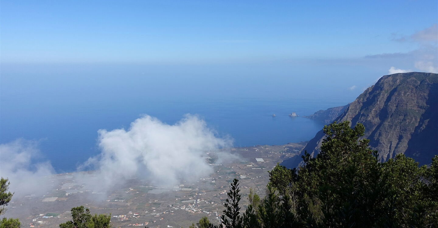 Weinanbau ist auf El Hierro immer noch ein zentraler Wirtschaftsfaktor, vor allem an den vulkanischen Steilhängen des fruchtbaren El-Golfo-Tals. Auf unserer Wanderung erleben wir, dass ab etwa 600 m Höhe die Rebstöcke vom üppigen immergrünen Lorbeerwald abgelöst werden. In dieser unteren Vegetationszone des Nebelwaldes wachsen mächtige Maronenbäume, Walnussbäume und vereinzelte Mocanbäume. Der Aufstieg bis zum Gratverlauf des zentralen Bergmassivs ist mühsam, wird aber mit einem unvergesslichen Weitblick belohnt. Nichts senkt den Stresslevel zuverlässiger als der Aufenthalt in freier Natur – auf geht‘s.