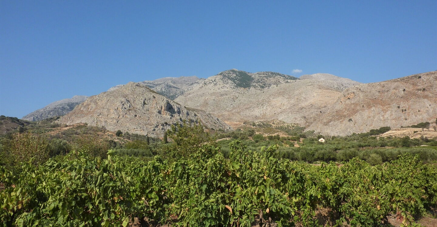 Von der Unterkunft in 01 Kato Asites (552 m) gehen wir auf der bergab führenden Asphaltstraße bei der ersten Möglichkeit rechts und anschließend halb rechts – direkt hinter der Kirche – weiter auf einer betonierten Piste. Dort, wo diese Piste eine Rechtskehre macht, gehen wir geradeaus auf der Schotterpiste weiter.