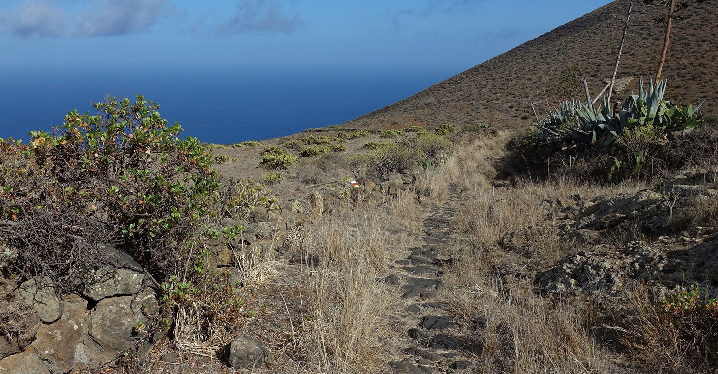 Der Aufstieg erfolgt auf einem historischen Camino, den die Einwohner als Verbindungsweg zum Meer nutzten, um dort zu fischen oder Meeresfrüchte zu sammeln. Am höchsten Punkt der Wanderung besichtigen wir die Neugierige Skulptur, eine Interpretation der seit 1741 stattfindenden Prozession der Gottesmutter Bajada de La Virgen de Los Reyes von dem ortsansässigen Künstler Rubén Armiche. Zurück geht es über den Camino Ancho, was so viel heißt wie breiter Weg – die am meisten frequentierte Verbindung zwischen der Inselhauptstadt und dem Hafen La Estaca, dementsprechend breit wurde der Camino angelegt. Die faszinierende Wanderung verknüpft kulturelle und landschaftliche Höhepunkte.