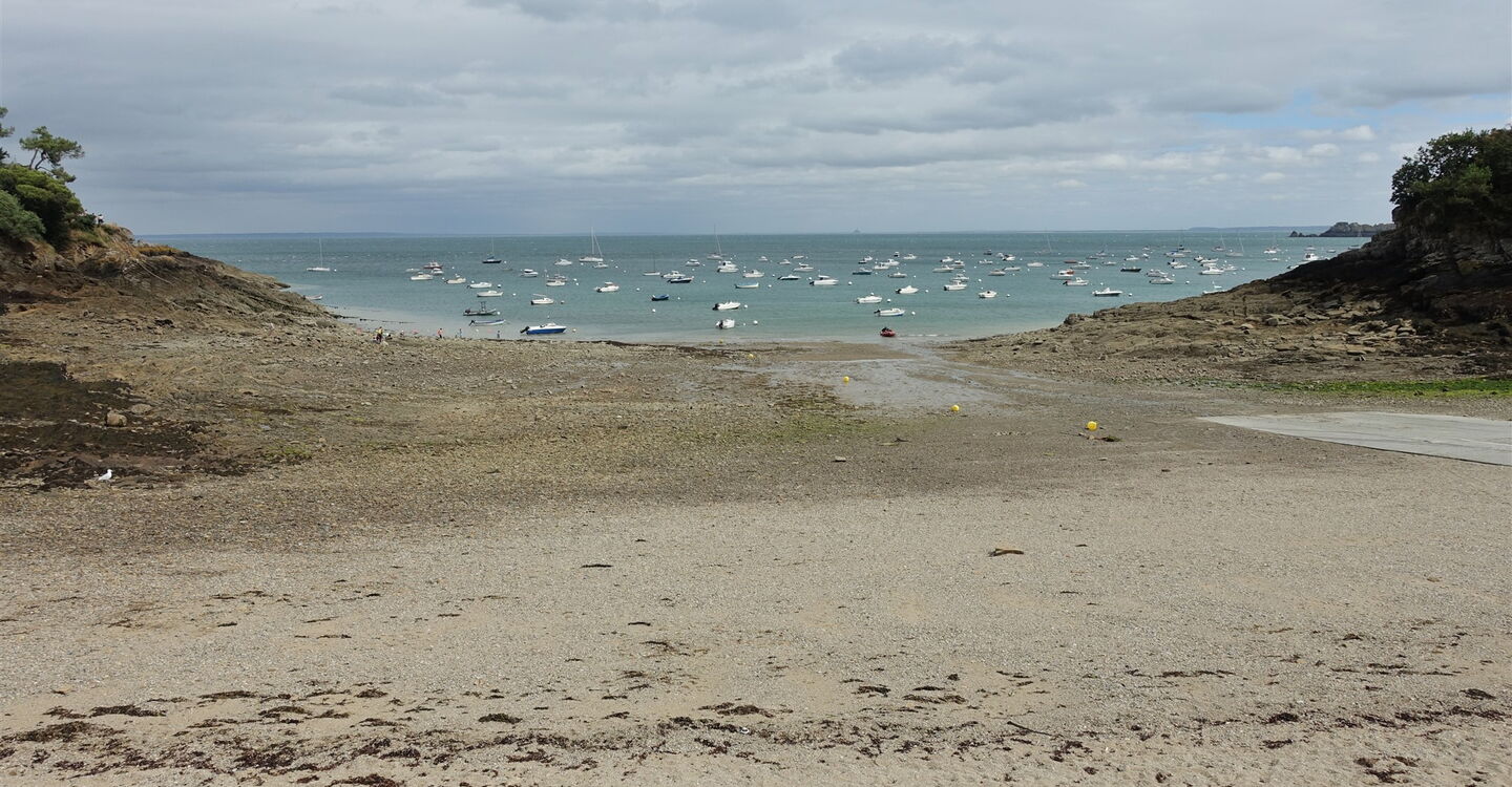 Nachdem wir die Pointe de la Mouliére hinter uns gelassen haben, erreichen wir den schönsten Strand auf der heutigen Wanderung, den 05 Plage du Verger (7 m) – ein 700 m langer und bei Ebbe 150 m breiter feiner Sandstrand. Auf dem Küstenpfad verlassen wir den Strand und erreichen einen Parkplatz. Dann setzen wir unsere Wanderung auf der nachfolgenden Straße bis zur Chapelle du Verger fort. Wir gehen rechts an der Kapelle vorbei und danach rechts auf einem Wirtschaftsweg weiter. Schließlich laufen wir direkt auf ein Haus zu, aber kurz vor dem Haus halten wir uns rechts. Sobald wir parallel zu einer etwas oberhalb liegenden Piste gehen, machen wir eine 180°-Kehrtwendung und folgen nun dieser Piste, die im weiteren Verlauf durch eine Senke, eine Linkskehre und eine Rechtskehre führt. Auf der Straße gehen wir bis zu deren Ende, dann gerade über die Straße und nehmen anschließend den weiterführenden Pfad. An dessen Ende gehen wir rechts und erreichen den Ausgangspunkt.