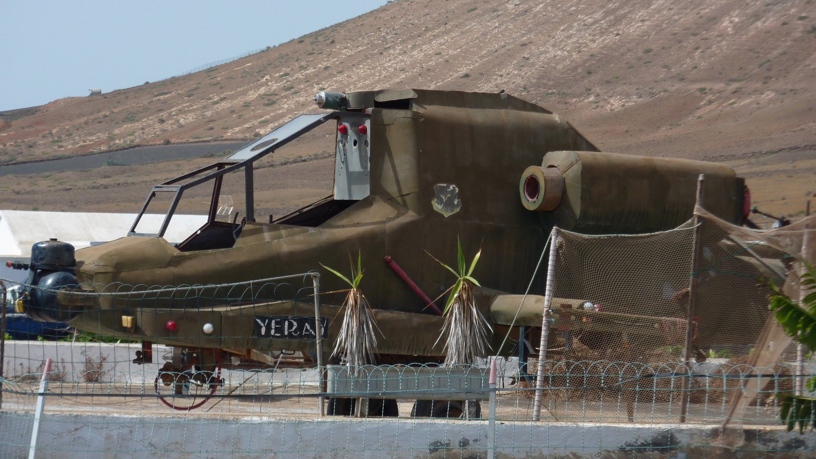 Mit der Buslinie 05 geht es von Arrecife nach Las Casitas de Femès. Mit dem Pkw beträgt die Strecke auf der LZ-2 und der LZ-702 22 km. Bereits in Las Casitas geht es vorbei an einem Hubschrauber - er steht im Vorgarten eines Hauses. Dann biegen wir bei der nächsten Möglichkeit links ab, um das Auto zu parken. GPS-Koordinaten 28.930283 -13.751083.