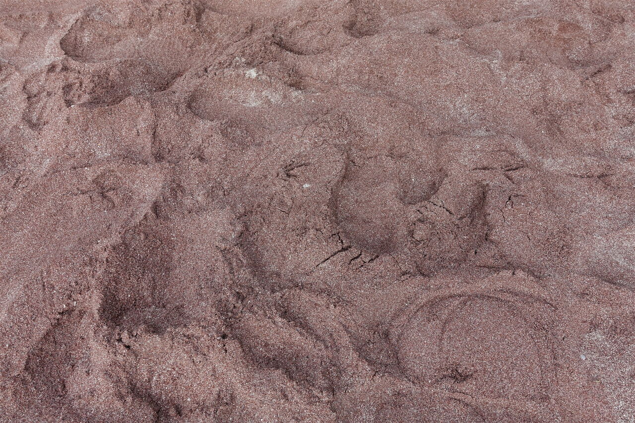 Bei einer Weggabelung gehen wir links bergauf. Nach Treppen, die bergab führen, kommen wir an der Pointe de la Groix oberhalb eines kleinen Leuchtturms vorbei. Hinter einer großen Freifläche gehen wir halb links auf der nachfolgenden Straße bergab und erreichen eine Feriensiedlung. Nach wenigen Metern entdecken wir die nächste Besonderheit der Insel am 03 Plage des Sables Rouges (9 m), nämlich den rot gefärbten Sandstrand. Hinter drei schönen Buchten steigt die Straße an, wir orientieren uns in Richtung des Landesinneren, aber bei einem großen Felsen biegen wir scharf links ab.