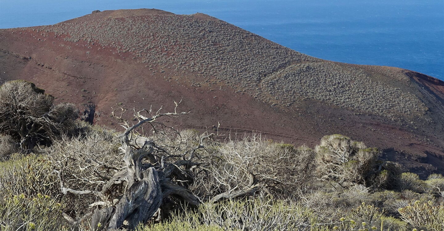 Das Landschaftsbild auf der Wanderung durch die atemberaubende Vulkanlandschaft ist geprägt vom tiefen Schwarz des Vulkangesteins, verschiedensten rötlichen Tönen der Felswände und einem großen gelblichen Felsen – allesamt Folgen unterschiedlichster vulkanischer Ausbruchsarten. Dazwischen befinden sich die grünen Tupfer von Wolfsmilchgewächsen und den bis auf den Boden gebogenen und knöchrigen Zedernwacholderbäumen. Die schönsten Aussichtspunkte liefert oftmals die Natur selbst.
