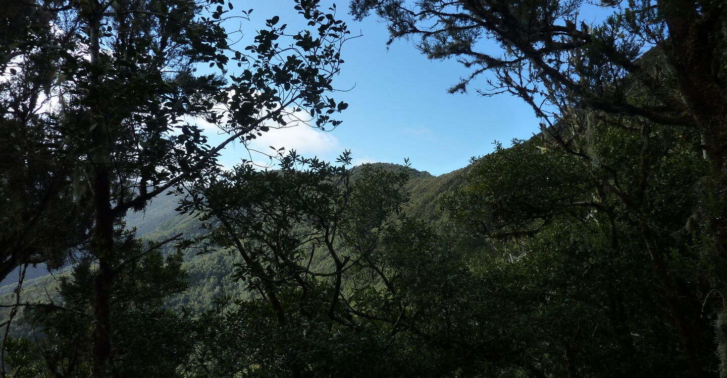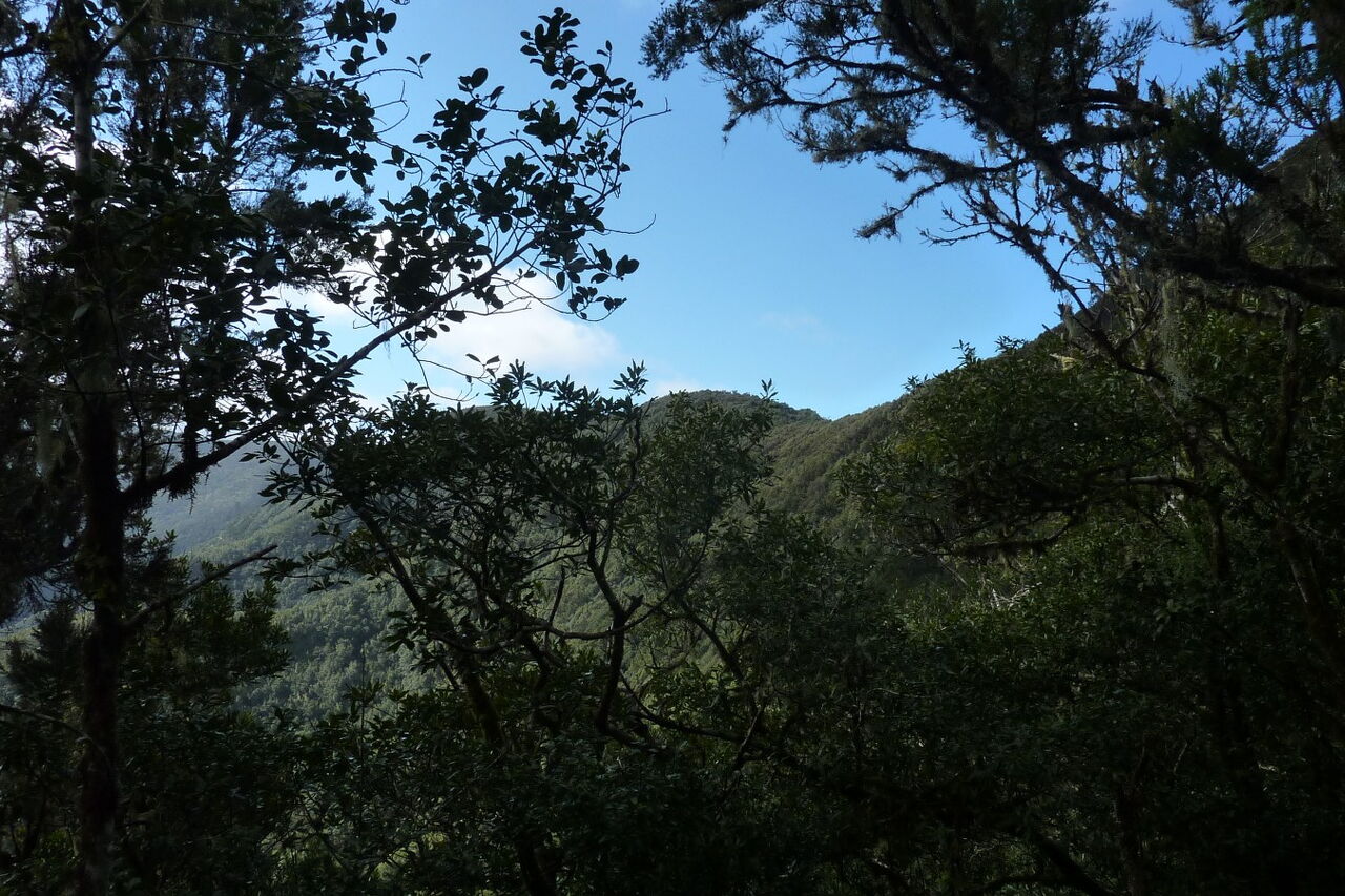 Beim (01) Start und Ziel (1083 m) gehen wir über die Hauptstraße hinüber zum Picknickplatz und von dort auf dem beginnenden Pfad leicht bergauf Richtung Las Creces, zunächst parallel zur GM-2. Bei der folgenden Weggabelung halten wir uns links. Nun geht es leicht bergab tiefer in den Nebelwald hinein.