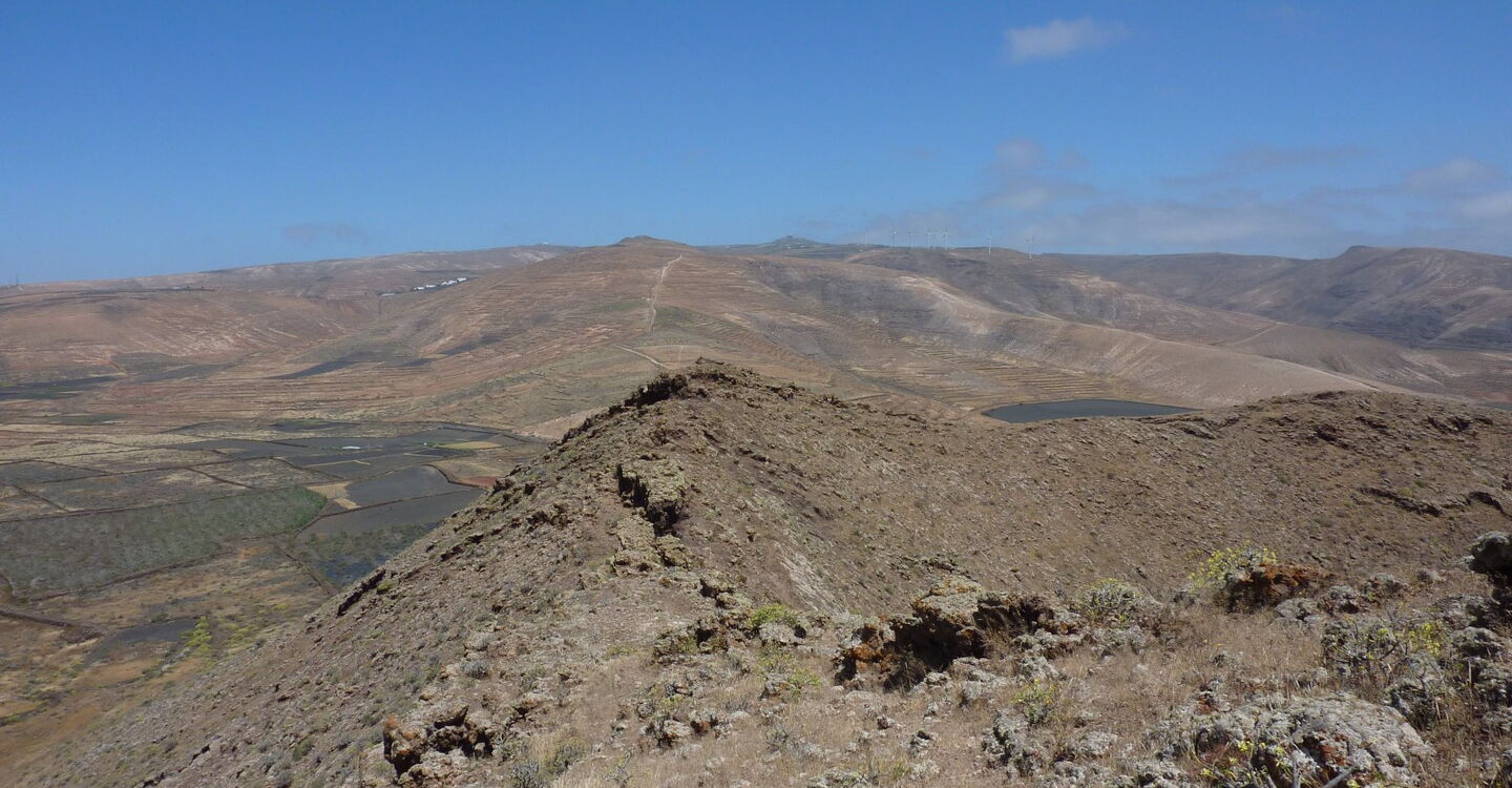 Der Ausgangspunkt der Wanderung ist das Dorf Guatiza im Nordosten von Lanzarote. Südlich von Guatiza liegen die beiden Hausvulkane Montaña Tinamala mit 330 m und Montaña de Guenia (358 m). Der höhere der beiden ist unser heutiges Ziel. Wenn man möchte und mit dem Pkw angereist ist, kann man die gesamte Wegstrecke noch um 5 km reduzieren, indem man bis zum Wegpunkt (02) fährt. Damit reduzieren sich die Höhenmeter auf 160. Trotz seiner geringen absoluten Höhe genießt man vom Gipfel aus eine wunderschöne Rundsicht.