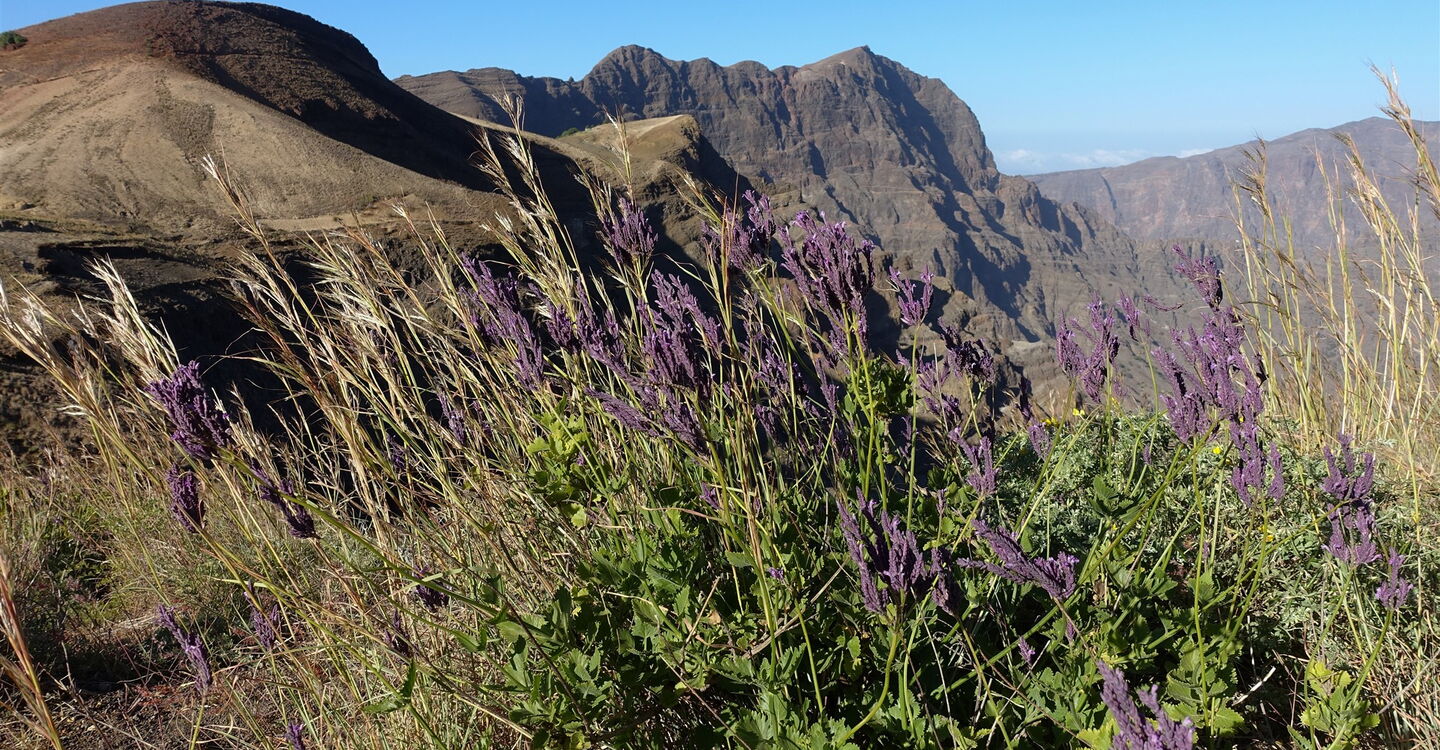 Jahrtausendelang hat das Wasser sich seinen Weg durch die westliche Hochebene von Santo Antão gebahnt. So entstanden spektakuläre Schluchten, die zum Wandern einladen. Unser erster Wegabschnitt führt durch eine wüstenartige Landschaft, nur nach Regenfällen erwacht die Natur. Dann steigen wir auf den Vulkankegel des 1863 m Mt. Lajes und uns erwartet ein unvergesslicher 360° Rundblick. Auf dem Grat einer riesigen Caldera, in dessen bis zu 1000 m tiefer gelegenen Talgrund das Dorf Chã de Morte liegt, marschieren wir auf einem spektakulären Höhenweg, der seinesgleichen sucht. Ein beeindruckendes Naturspektakel.