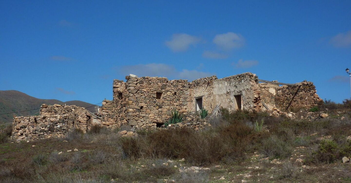 Am (01) Start und Ziel (242 m) gehen wir zunächst auf der Anfahrtsstraße 30 m zurück, um dann der Schotterpiste links herunter in südliche Richtung zu folgen. Vorbei geht es an rechts von uns liegenden Ruinen und weiter parallel zu einem links von uns liegenden Barranco. Bei der folgenden Weggabelung, 20 m vor einem Wasserauffangbecken, lassen wir den rechten Abzweiger liegen und bleiben auf dem Hauptweg. Wir erreichen ein Barranco. Rechts bei einem großen Stein führt eine größere Schotterstraße leicht bergauf, wir gehen jedoch links im Barranco weiter. Der Weg führt an einem weißen Haus vorbei und rechts vom Weg liegen viele Tomatenplantagen. Nach starken Regenfällen ist der folgende Wegabschnitt direkt im trockenen Flussbett schwer auszumachen.
