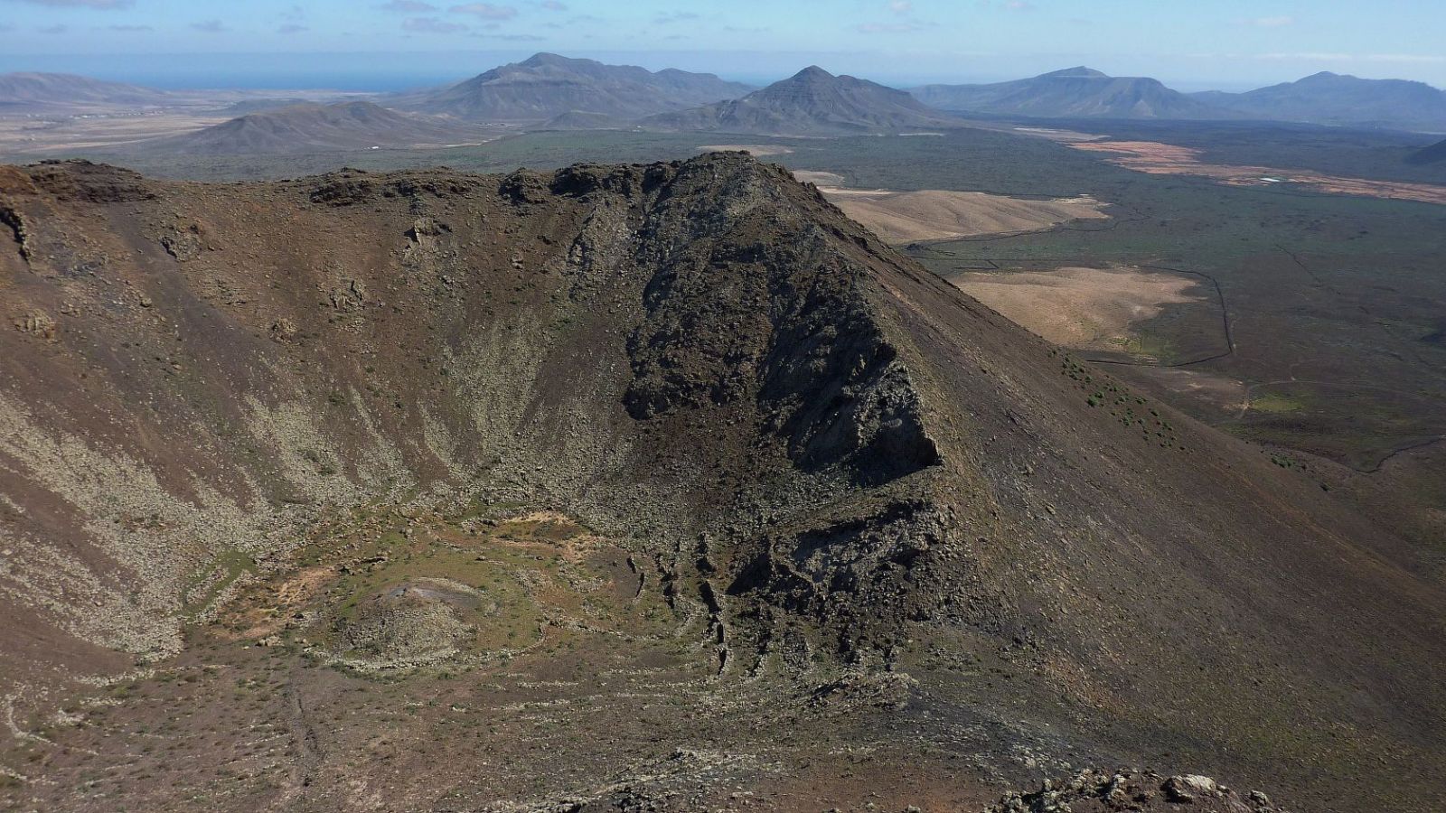 Die letzten vulkanischen Aktivitäten auf Fuerteventura erloschen vor 4.000 bis 5.000 Jahren. Dabei waren das Naturdenkmal Caldera de Gairia – Ziel der heutigen Wanderung – und der Vulkan de la Arena im Norden von Fuerteventura die letzten aktiven Vulkane. Nachdem wir die Tomatenplantagen von Tiscamanita hinter uns gelassen haben, beginnt ein spektakulärer Aufstieg über den südlichen Grat der Caldera de Gairia auf den Kraterrand. Besonders beeindruckend ist es, an dieser Stelle nachzuvollziehen, wie sich der Lavastrom seinen Weg Richtung Osten bis nach Pozo Negro und weiter ins Meer bahnte. Beim spektakulären Abstieg geht es vorbei an zwei großen Erosionseinbrüchen – ein Muss für jeden geologisch oder an Vulkanen Interessierten.