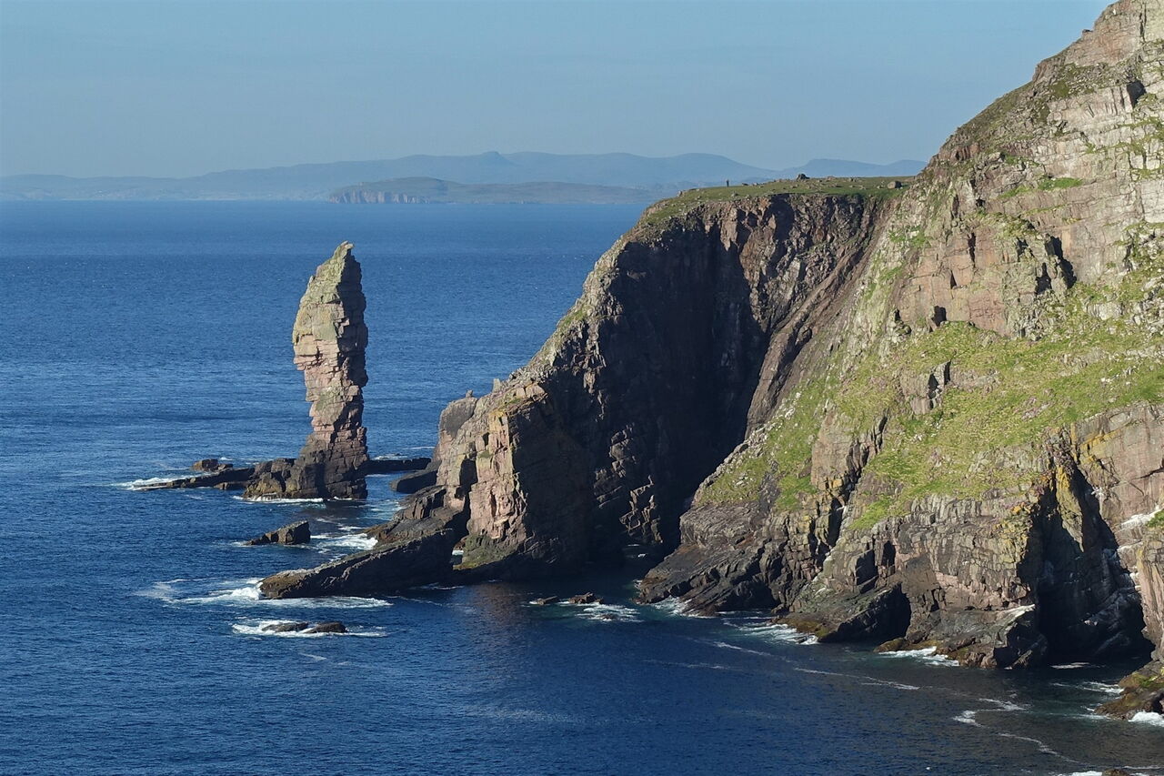 An einer Landspitze befindet sich ein 02 Aussichtspunkt (72 m) mit einem faszinierenden Blick entlang der Steilküste, an deren Ende der Old Man of Stoer auszumachen ist.
