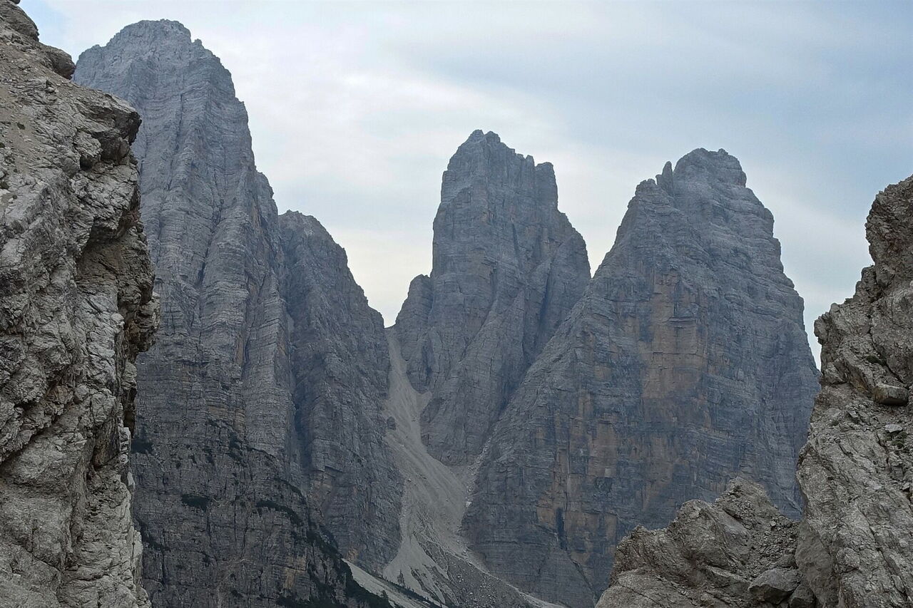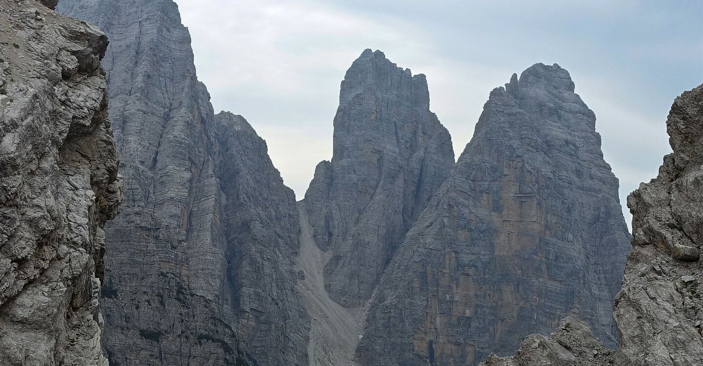 Diese Tour beschreibt den 1. Wegabschnitt der spektakulären Querung der Bosconerogruppe, die noch weitgehend unbekannt und kaum erschlossen ist. Auf dieser sehr naturnahen Wanderung erblicken wir vor der Einsattelung Le Calades die schroffen Felsgipfel des 2.413 m hohen Sassolungo di Cibiana und des 2.425 m hohen Sfornioi. Sobald wir die Einsattelung Le Calades überschritten haben, ergibt sich eine fantastische Sicht auf den 2.430 m hohen Sasso di Toanella, den 2.412 m hohen Rocchetta Alta und den 2.469 m hohen Sasso di Bosconero. Bei dieser einmaligen Naturlandschaft ist das Wandern ein Vergnügen der Extraklasse.