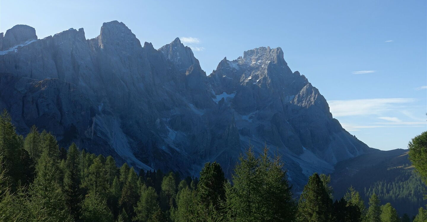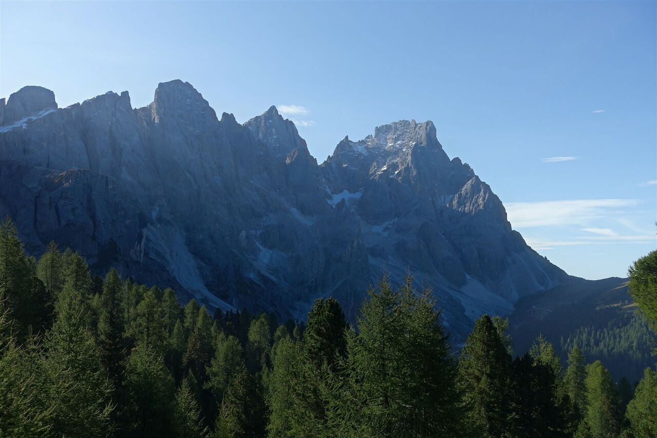 Die Besonderheit dieser Variante zur Etappe 12 von 21 (Tour 41): Wir steigen unterhalb der bizarren Felstürme der Pale di San Martino über den 2.571 m hohen Passo del Mulaz bis zum Rifugio Mulaz auf. Die Strecke ist ca. 35 Minuten, 1 km, 180 Höhenmeter bergauf und 200 Höhenmeter berab länger.