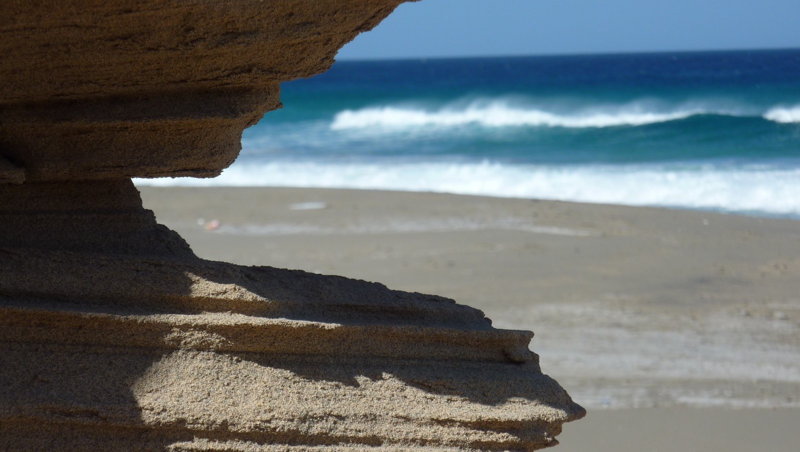 Am Strand Playa de Cofete angekommen, gehen wir links in Richtung des Felsens Roque del Moro, den man schon gut aus der Ferne erkennen kann.