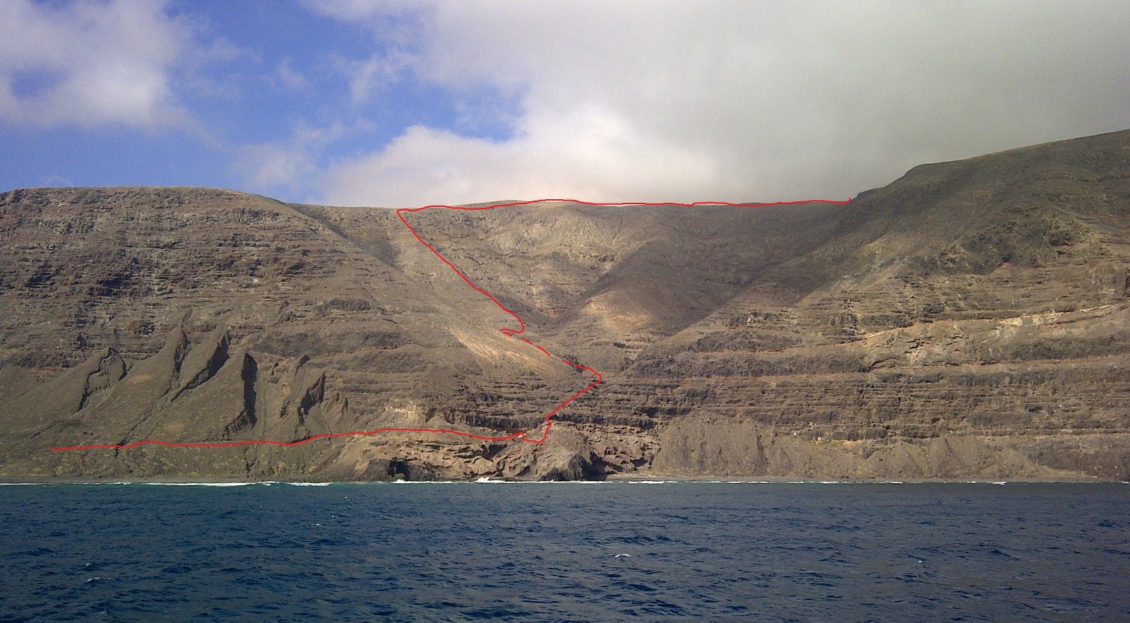 Der Gebirgszug Risco de Famara ist ein 15 km langer und bis zu 670 m hoher Bergrücken parallel zur Küste. Am nördlichsten Zipfel von Lanzarote fallen die Klippen nahezu senkrecht bis zum Playa de la Canteria ab. Zwei markante Schluchtausläufer fräsen sich durch das 12 Millionen Jahre alte Massiv. Diese erste dokumentierte Tourenbeschreibung ist die Route vom Playa de la Canteria durch einen der beiden Schluchtausläufer und weiter durch die Nordostflanke des Gebirgszugs bis hinauf zum Mirador del Rio. Auf einem alten Handelspfad geht es zurück zum Ausgangspunkt.