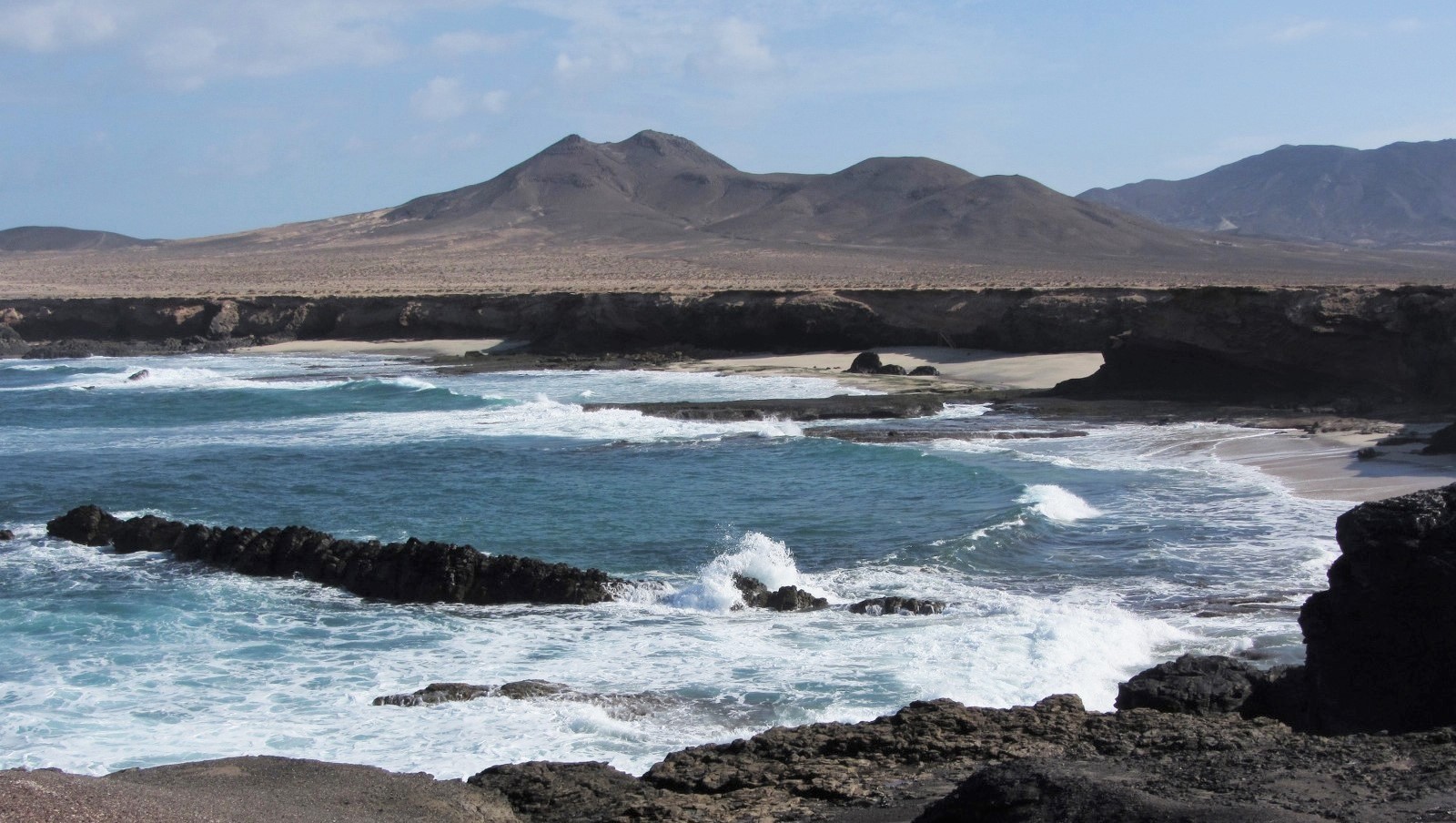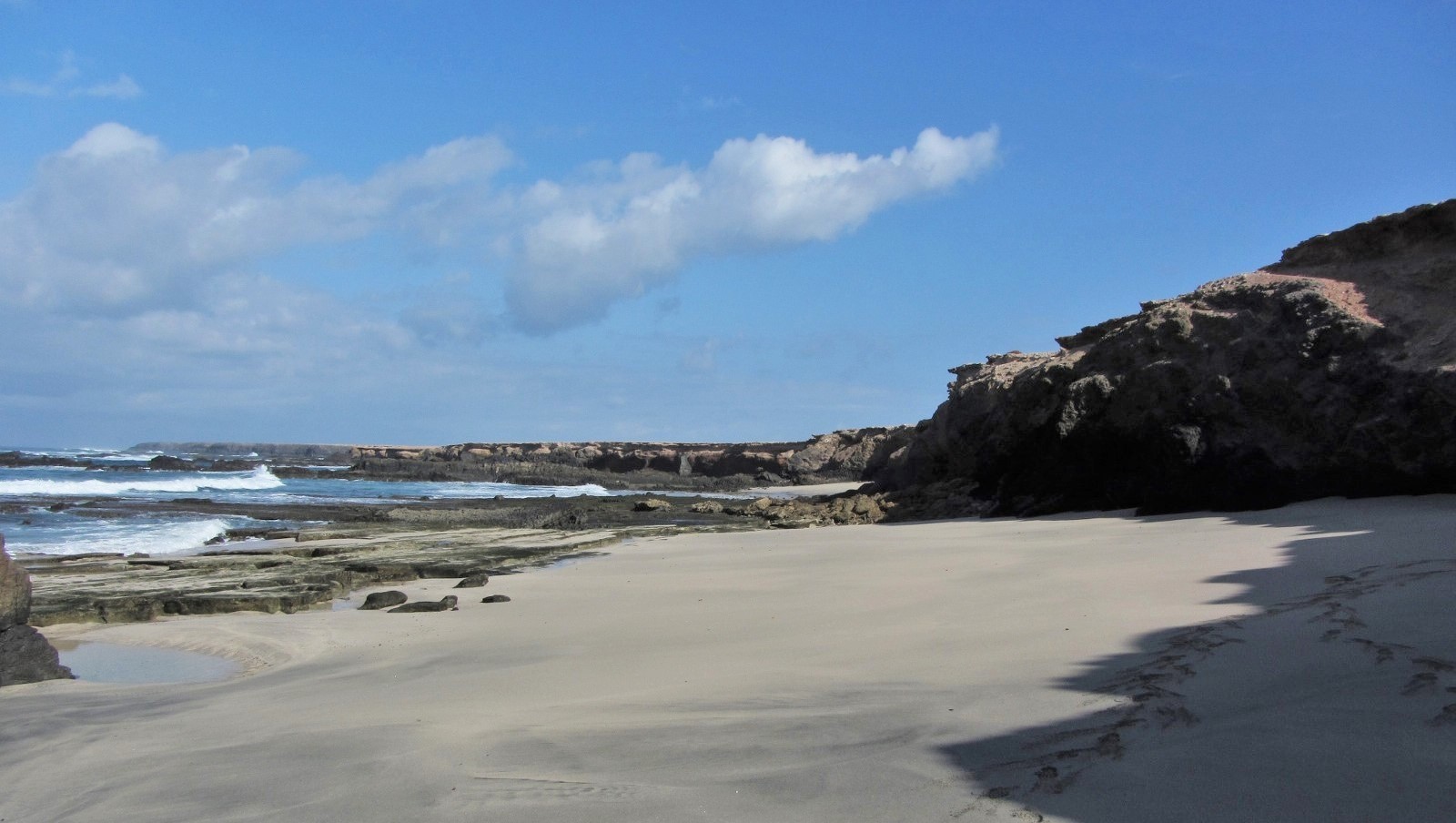Der sehr wenig besuchte, 250 m lange und bis zu 10 m breite feine Sandstrand liegt versteckt im äußersten Südwesten von Fuerteventura, in der Nähe des Örtchens Puerto de la Cruz. ǀ Der Strand ist nach einer schwierigen Autofahrt auf einer kurzen Wanderung zu erreichen. ǀ Baden ist aufgrund der hohen Wellen nur bedingt möglich. ǀ Verschiedenes: sehr romantischer, sauberer Strand mit sauberem Wasser, teilweise Schatten, nicht mit dem Buggy erreichbar, FKK möglich, Hunde nicht erlaubt ǀ Toiletten, Duschen, Sonnenstühle und Sonnenschirme sind nicht vorhanden ǀ Aktivitäten: die Seele baumeln lassen, Boccia ǀ Tipp: Bei starken Winden, die es auf Fuerteventura oft gibt, liegt man am Playa de Ojas unterhalb der Felsen sehr windgeschützt! |