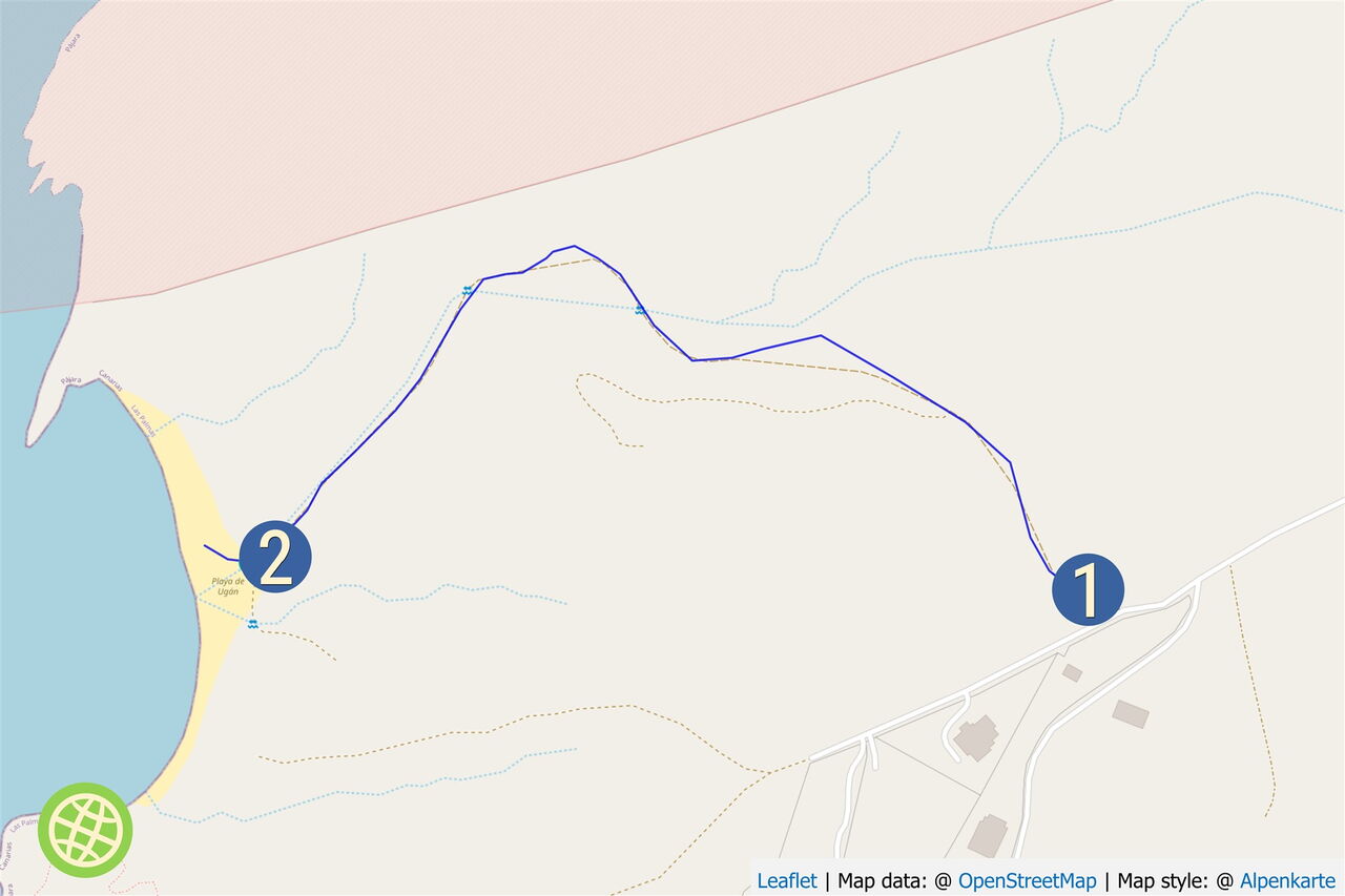 Nach langen Trockenperioden und guter Piste kann man bis an den Strand fahren. Art des Weges: Untergrund: Anfahrt und Wanderung erfolgen auf einem Schotterweg. Als Ausrüstung empfehlen wir nichts Besonderes. Ein Geheimtipp ist die Einkehr in das Restaurant Bahia La Pared im 5 km entfernten La Pared. Diese Tour kann man das ganze Jahr über machen. Interessantes: Ein imposantes Naturschauspiel sind die bis zu 5 m hohen Wellen, die bei Sturm auf die Küste prallen.