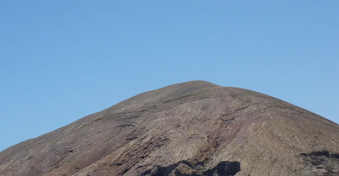 Auf dem folgenden Wegstück versagen die meisten Navigationsgeräte. Zur Orientierung: Direkt hinter uns liegt die markant aussehende, hellbraune Montaña de Teneza. Die Straße rechts, die Richtung Tenesar führt, lassen wir liegen und fahren auf der Schotterstraße geradeaus weiter. Ab hier, vom 01 Start und Ziel 149 m, führt die Strecke nun exakt 2,7 km durch die Lavafelder. Links von der Straße sieht man die Caldera Blanco mit ihrem 1 km großen Vulkandurchmesser. Wir lassen die Schotterpiste links Richtung Caldera Blanco liegen und fahren geradeaus weiter.