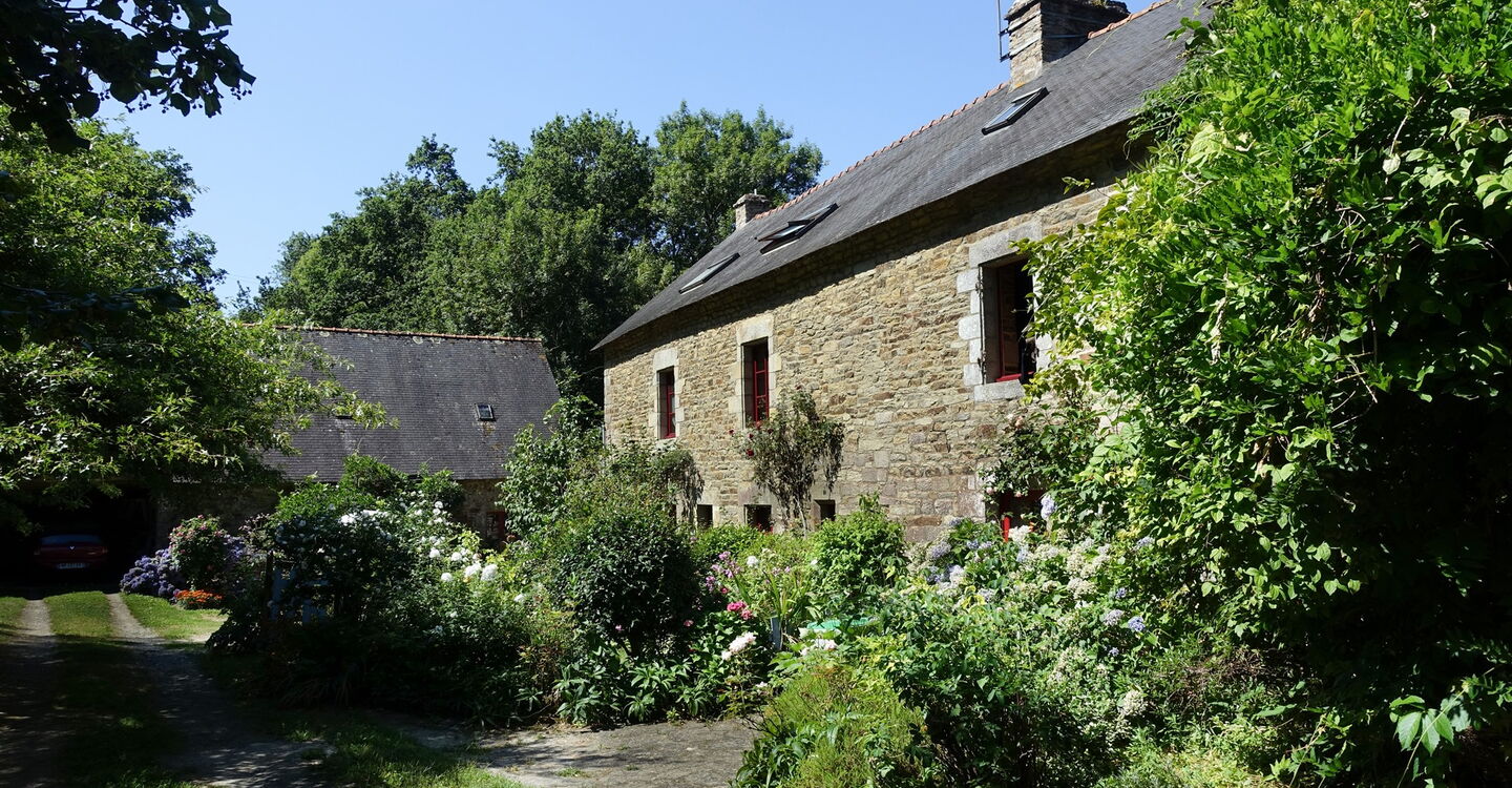 Nachdem wir durch eine Linkskurve gegangen sind, erreichen wir die ehemalige Mühle von Lesnevé, sie beherbergt heute Ferienwohnungen. Direkt hinter deren Parkplatz verlässt ein Pfad die Straße nach links. Dieser führt entlang der langen Mauer des Château de Beauregard Saint-Avé, das man von keiner Position aus sehen kann. Es wurde im 18. und 19. Jahrhundert erbaut, an der Stelle, wo zuvor ein altes Herrenhaus aus dem 15. Jahrhundert stand. Historisch ist das Gebäude interessant, denn am 14. Februar 1800 war es Ort der Unterzeichnung der Friedensverträge der Bretagne. Nach einem wunderschönen Hohlweg gelangen wir an eine Weggabelung, an der wir halb rechts gehen, bevor wir kurz später wieder auf die Straße treffen, an der wir links gehen. Die Straße endet an der Hauptstraße, an der wir rechts auf dem Pfad 333 m weitergehen, um hinter einem Holztor die Straße zu queren und auf einen weiteren schönen Hohlweg zu gelangen. Wir erreichen die Quelle beim 04 Croix de Fontenon (67 m).