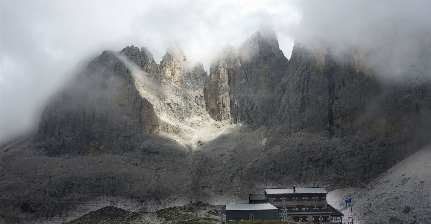 Von dem 01 Rifugio di Rosetta (2.581 m) folgen wir dem leicht bergab führenden Pfad in südliche Richtung. Dieser ist auch ausgeschildert zum Passo di Ball und Rifugio Pradidali – Wegnummern AV 2 und 702.