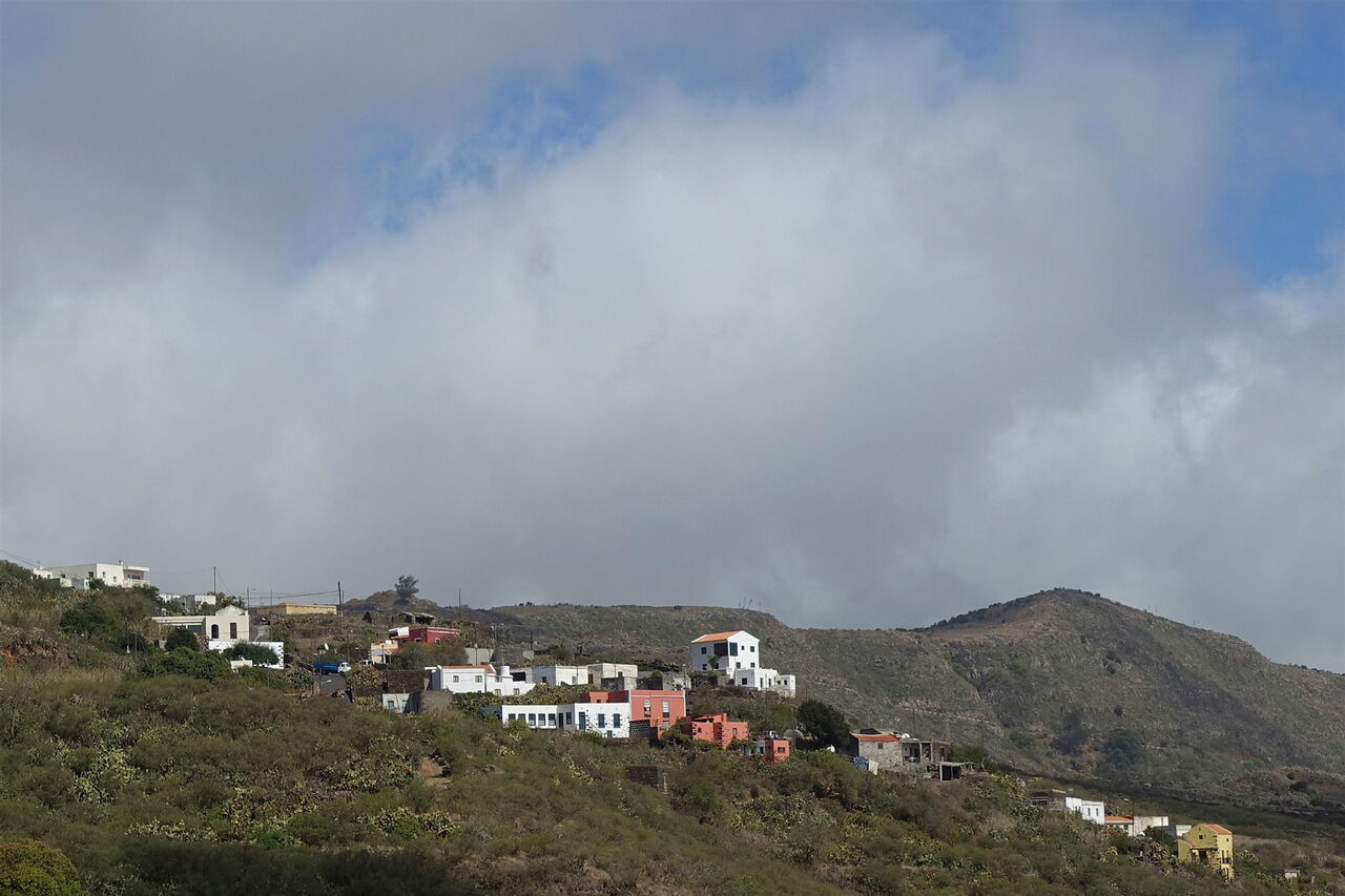 Dort, wo die Straße endet, gehen wir rechts über das Trockenbachbett, dann sofort geradeaus weiter und ignorieren den linken Abzweiger Richtung Mirador Isora. Nach 450 m, bei einem rotbraunen Eckhaus, ignorieren wir den linken Abzweiger, um nach 25 m auf der weiterführenden Straße links in die betonierte Piste zu biegen – an einem gelben Haus vorbei. Die nachfolgenden Abzweiger ignorieren wir, bis die Straße eine Rechtskehre macht, wir aber geradeaus weiter auf dem ausgeschilderten Camino La Atalaya bergab wandern, bis wir einen atemberaubenden Aussichtspunkt erreichen, den (03) Mirador Isora (821 m).