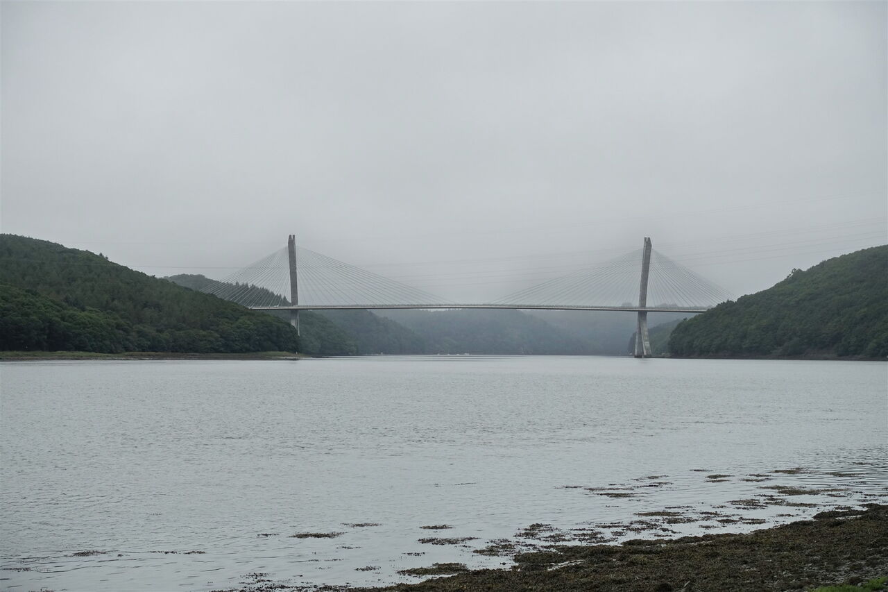 Die letzten Wölfe im Département Finistère wurden im 20. Jahrhundert erlegt. Eine Überlieferung berichtet, ein Wolf habe sich in die Fluten des Flusses Aulne Maritime gestürzt, um der jagenden Meute zu entkommen. Heutzutage wandert man unbesorgt entlang der herrlichen Mündung der Aulne Maritime, die eine liebliche Landschaft geformt hat: Küstenwälder mit Maronenbäumen und mächtigen Eichen, Felder, Schilf, Watt und Kieselbuchten. Auf der gegenüberliegenden Uferseite erhebt sich die eindrucksvolle Silhouette des Berges Menez-Hom. Die architektonisch sehr interessante und geschwungene Hängebrücke Pont de Terenez passt nicht so ganz in das Naturspektakel – trotzdem ein faszinierendes Outdoor-Abenteuer.