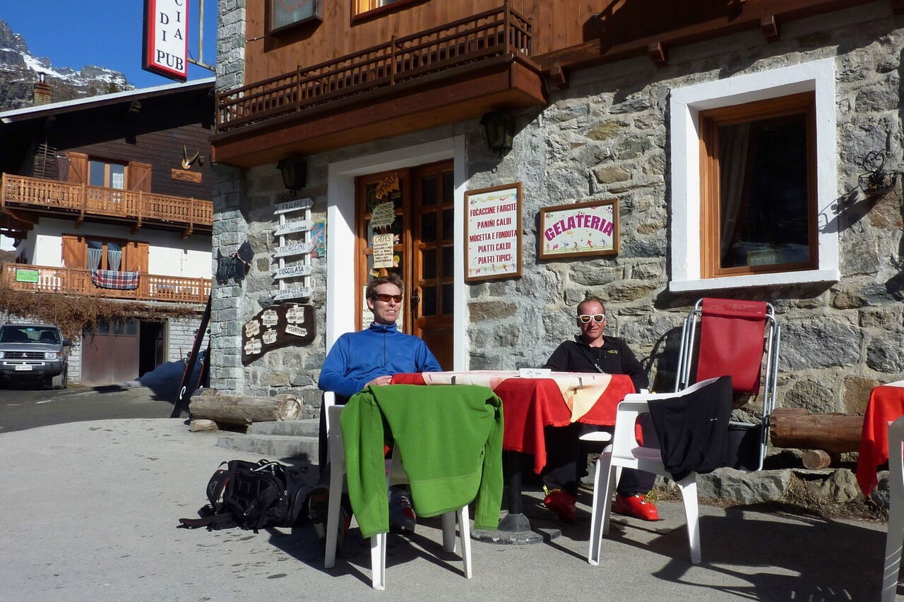 Nach dem Mittagessen hat uns der Capo des Bub mit seinem Fiat zur 1 km entfernten Seilbahn, die uns wieder ins Skigebiet bringt, gefahren. Sonst kann man ein Taxi, Tel. (0039) 335 6 62 67 48, bestellen.