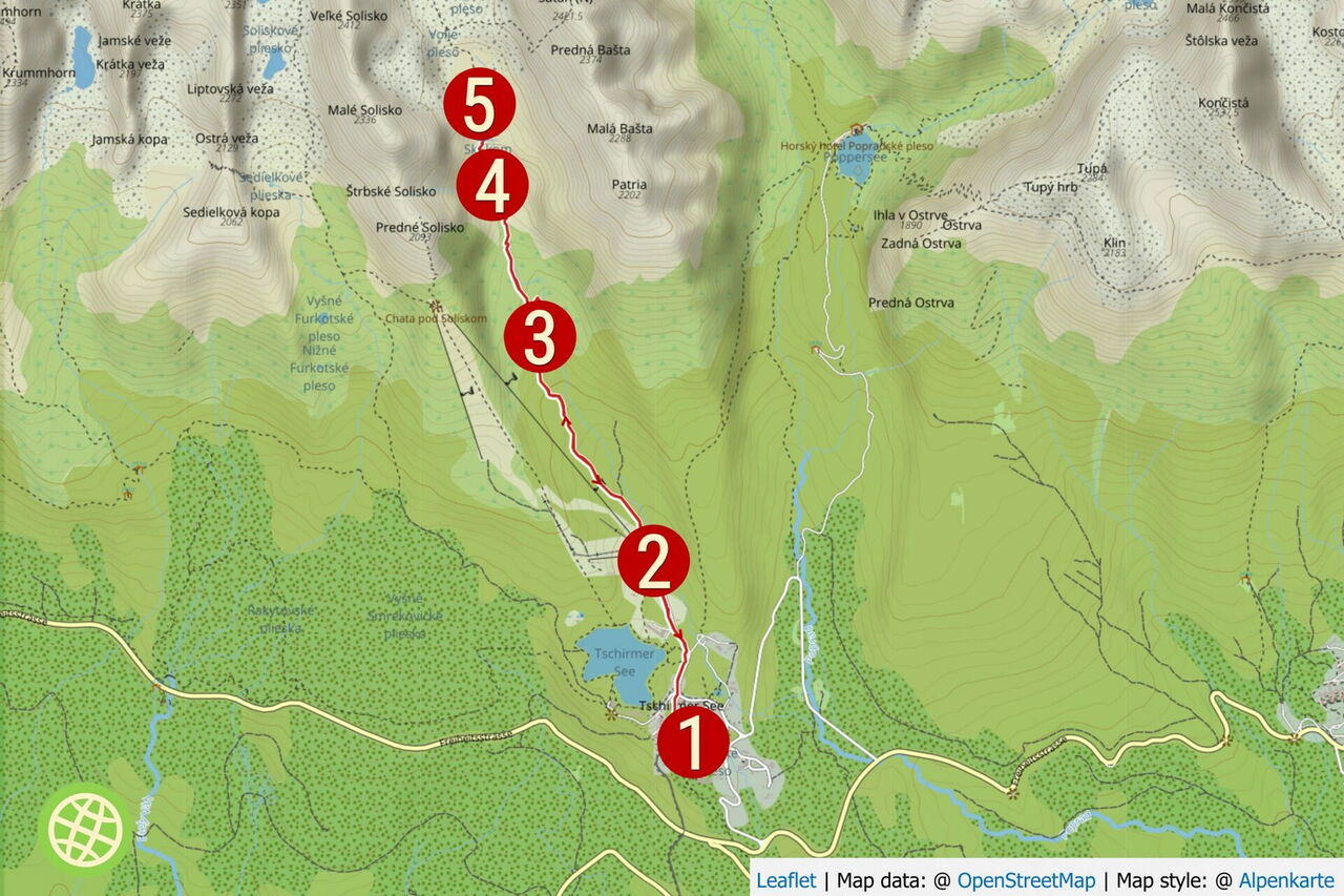 Start: Der Ort Štrbské Pleso befindet sich 30 km westlich von Poprad an den südlichen Hängen der Hohen Tatra. Überall im Ort gibt es kostenpflichtige Parkplätze. GPS: 49.118167 20.063467. Öffentliche Verkehrsmittel: Am bequemsten ist es, mit der elektrisch betriebenen Schmalspurbahn anzureisen.