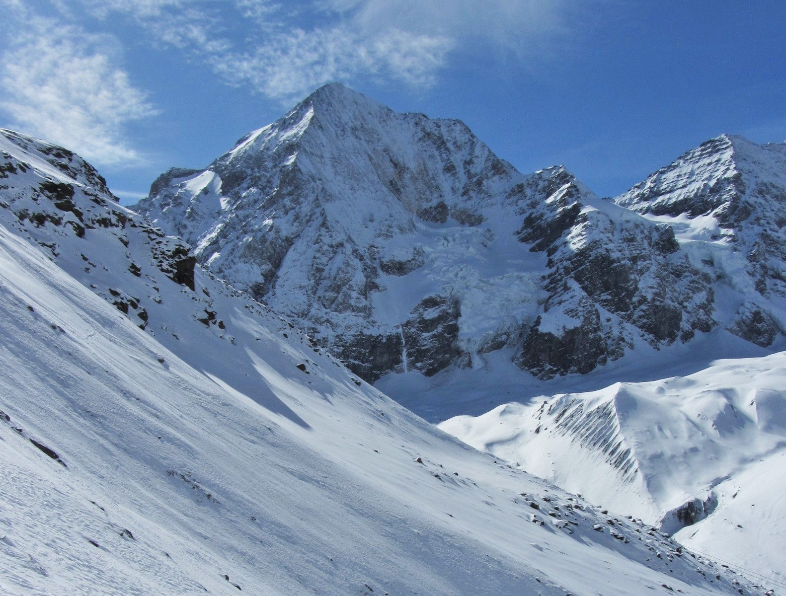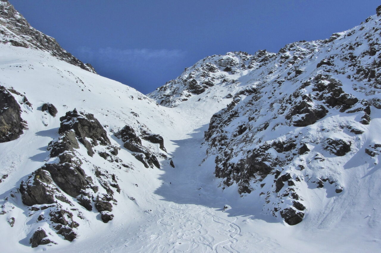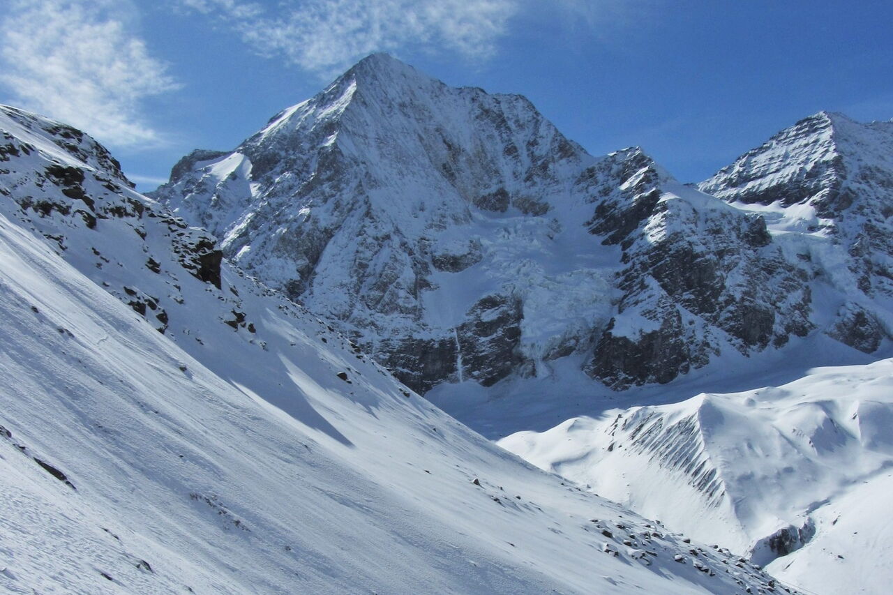 Einfache Orientierung auf dem Freeride-Stück außerhalb der markierten Pisten. Die Abfahrt führt über einen Westhang. Folgende Ausrüstung wird empfohlen: Produkte für alpine Sicherheit im Schnee, Freerideski und Skitourenhelm. Es gibt keine Einkehr auf der Tour. Beste Jahreszeit: Januar bis April. Uns erwarten kurze Stücke mit bis zu 40° Hangneigung.