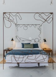Wir wandern rechts bis zur Kreuzung mit der (03) LZ-10 (363 m). Nach der Überschreitung des Bergkamms befinden wir uns nun oberhalb des Valle de Malpensa. Rechter Hand liegt der Ort Haria - das Tal der 1.000 Palmen. An der Kreuzung halten wir uns links und gehen für 400 m in Richtung Teguise. Kurz nach dem Schild mit der Beschriftung "LZ-10 20 km" führt links der Camino Naturale bergauf. Wir gehen durch einige enge Kehren den Berg hinauf und queren dabei die LZ-10. Tipp: Geht man an dieser Stelle die Straße bis zur nächsten Kehre vor, so kann man von diesem Aussichtspunkt das Valle de Temisa in seiner ganzen Länge überblicken. Auch stehen an dieser Stelle wahre Prachtexemplare von Drachenbäumen. Der Pfad quert abermals die Hauptstraße, bevor es kurz später auf einer Schotterstraße weitergeht. Nach 600 m, immer parallel zur LZ-10, sehen wir rechts am Wegesrand eine Finca, die auf einem braun-weißen Sockel mit schwarzen, aufgesetzten Lavasteinen steht. Hier gehen wir links zur Asphaltstraße, um dann der Hauptstraße rechts für 950 m zu folgen, bis wir in 100 m Entfernung ein dunkelbraunes Haus sehen.