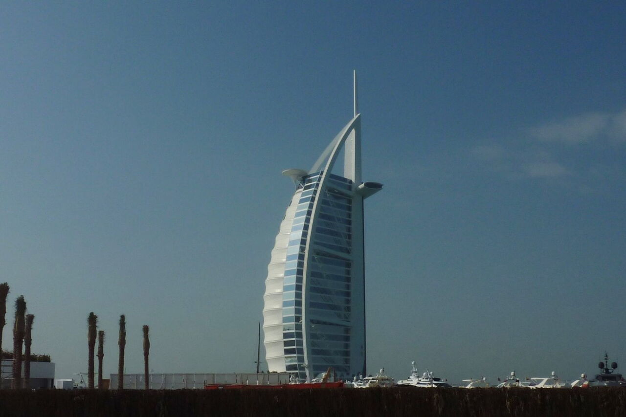 Das Burj al Arab ist das bekannteste Wahrzeichen Dubais. Mit seinen 202 Suiten und 312 m Höhe ist es eines der luxuriösesten Hotels der Welt und das einzige Hotel mit „inoffiziell“ sieben Sternen.