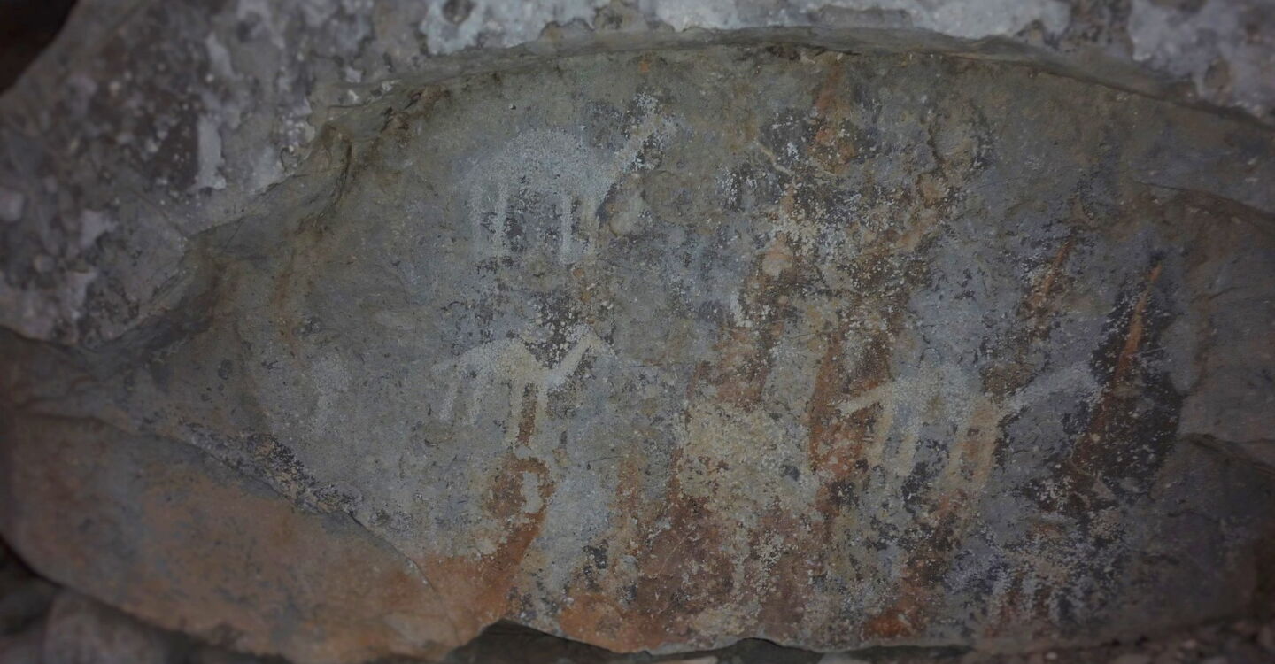 Genau auf der anderen Straßenseite, gänzlich unscheinbar und ohne Markierung, sind direkt am Straßenrand die 2.000 Jahre alten Felszeichnungen mit Tieren und Kriegern zu sehen.