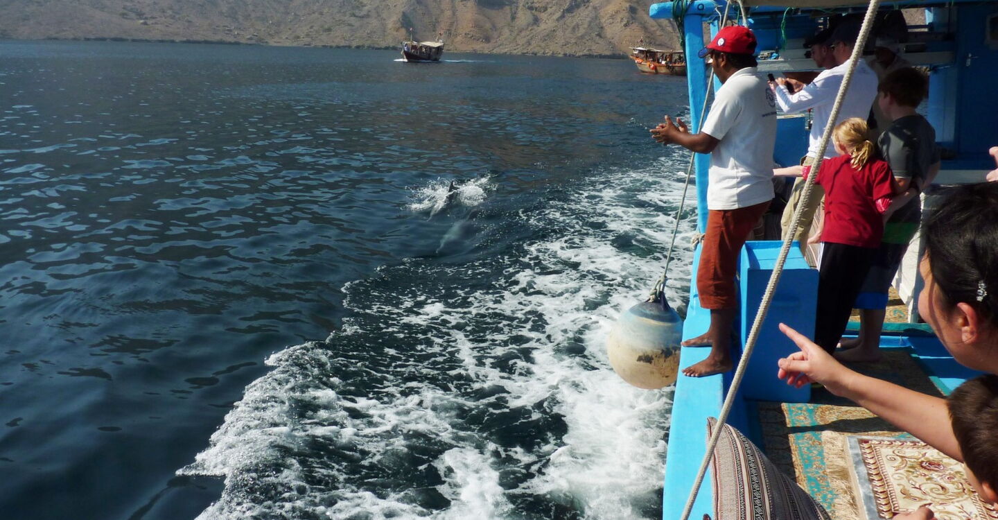 Heute haben wir einen Tag der völligen Entspannung vor uns. Wir fahren mit dem klassischen Schiff der arabischen Welt, der sogenannten Dhow, 25 km durch die Fjorde von Musandam.