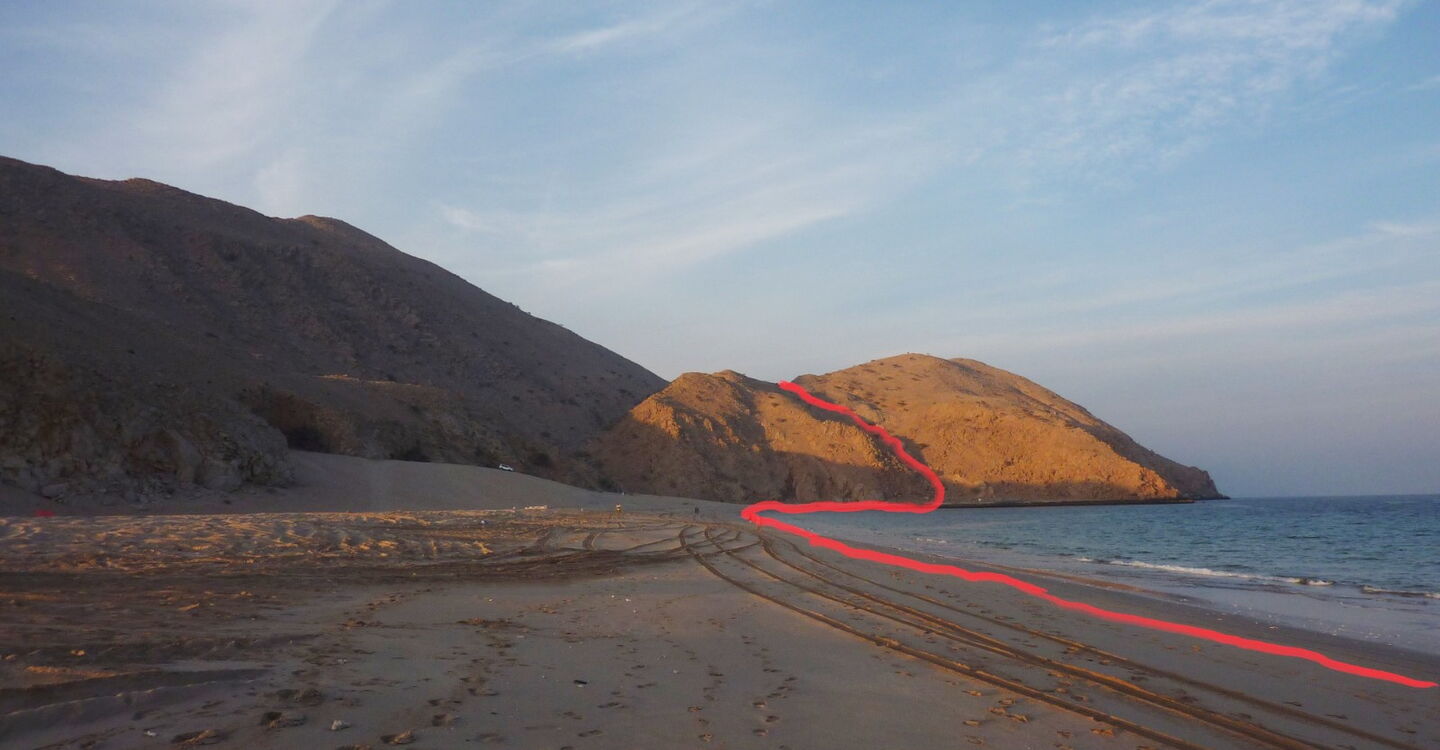 Die Garmin-Navigationsgeräte erlauben die Eingabe der GPS-Koordinaten N25 40.189 E56 16.272. Sie führen dich zum Startpunkt, von wo du den heruntergeladenen GPS-Track verwendest.