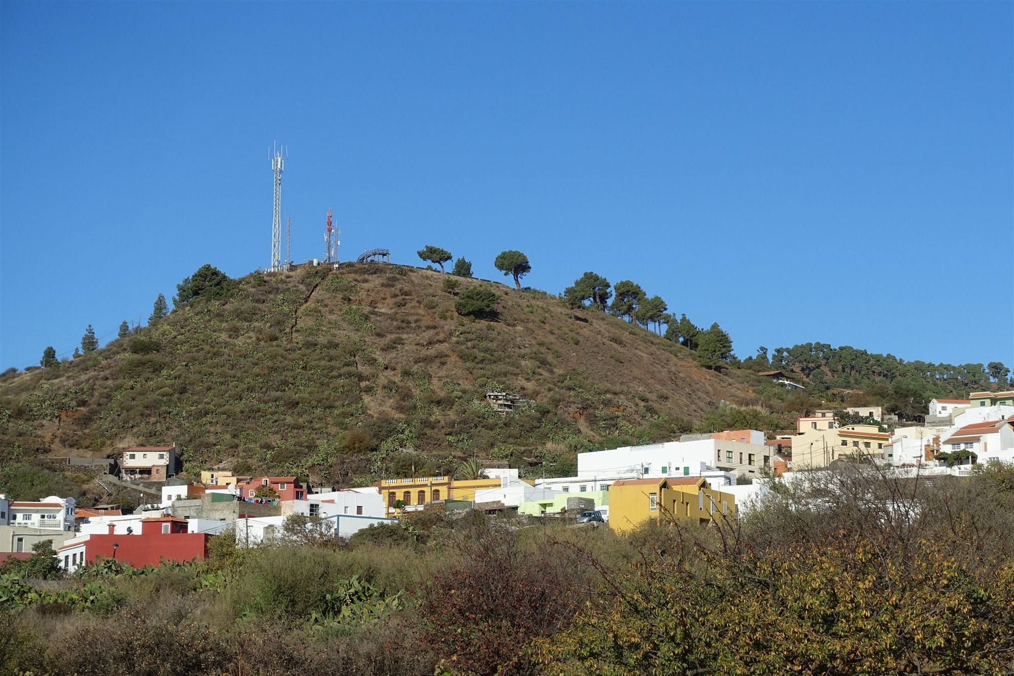 Von der (01) Bushaltestelle in Taibique (845 m) gehen wir auf der Verbindungsstraße Richtung La Restinga bergab und biegen direkt hinter dem Mirador links ab. Sobald wir die Dorfkirche sehen, biegen wir rechts in die Calle Atalaya ein. An einer gelben Mauer endet die Straße und wir gehen rechts. Kurz vor dem Friedhof biegen wir links in die Straße ab, sodass wir uns nun auf dem Camino La Restinga befinden.