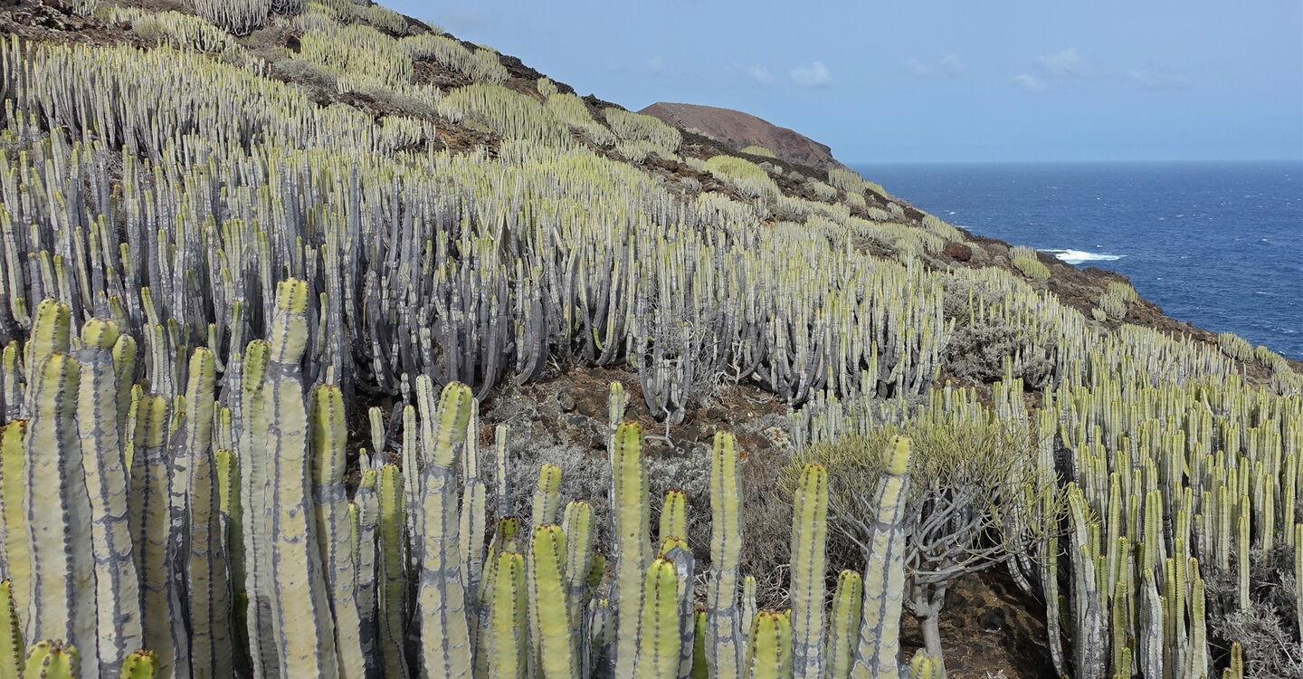 Der Nordosten von El Hierro ist so gut wie gar nicht touristisch erschlossen, hat aber unentdeckte Naturschönheiten zu bieten, die auf dieser spektakulären Wanderung zu sehen sind. Besonders beeindruckend sind die unzähligen Gesellschaften von Kanaren-Wolfsmilch, das Brandungstor und die Badebecken Charco Manso. Ein kulinarischer Höhepunkt ist eines der besten Restaurants auf El Hierro. Was braucht der Mensch zu seinem Glück? Draußen sein!
