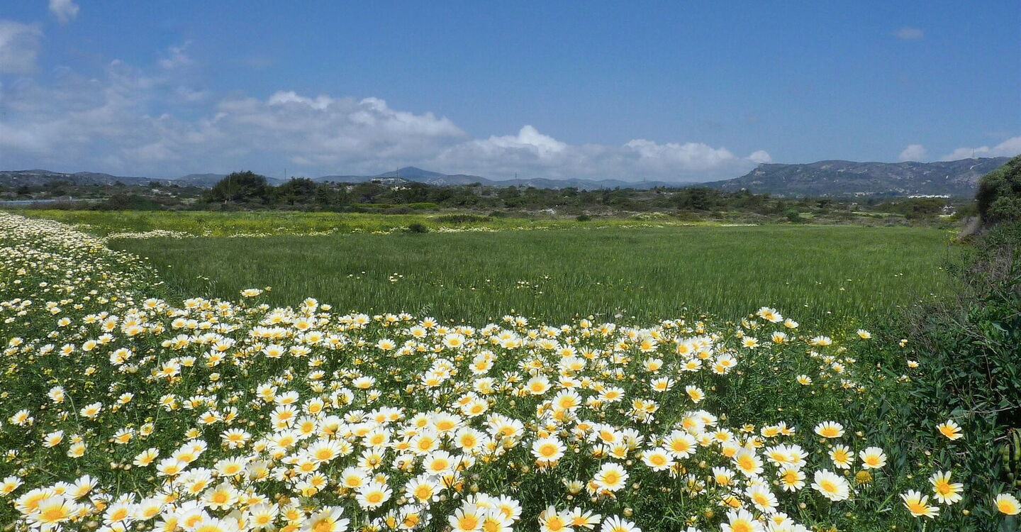 Vom Fünfsternehotel Thalasso Spa Resort führt unsere Wanderung durch die fruchtbare Hügellandschaft zu dem romantischen Dorf Lachania. Noch in den achtziger Jahren war es fast komplett entvölkert, doch dann plötzlich nahm die Entwicklung einen ganz anderen Verlauf, denn ausländische Investoren erweckten den Ort zum Leben. Sie renovierten die traditionellen Häuser und gaben dem Ort ein neues Erscheinungsbild. In dessen Mitte befindet sich eine sehr traditionelle Taverne, die zum Verweilen einlädt. Der Rückweg führt durch eine kleine Schlucht bis zum Meer herunter, wo das dunkelblaue Mittelmeer und die ruhige Ägäis aufeinandertreffen.